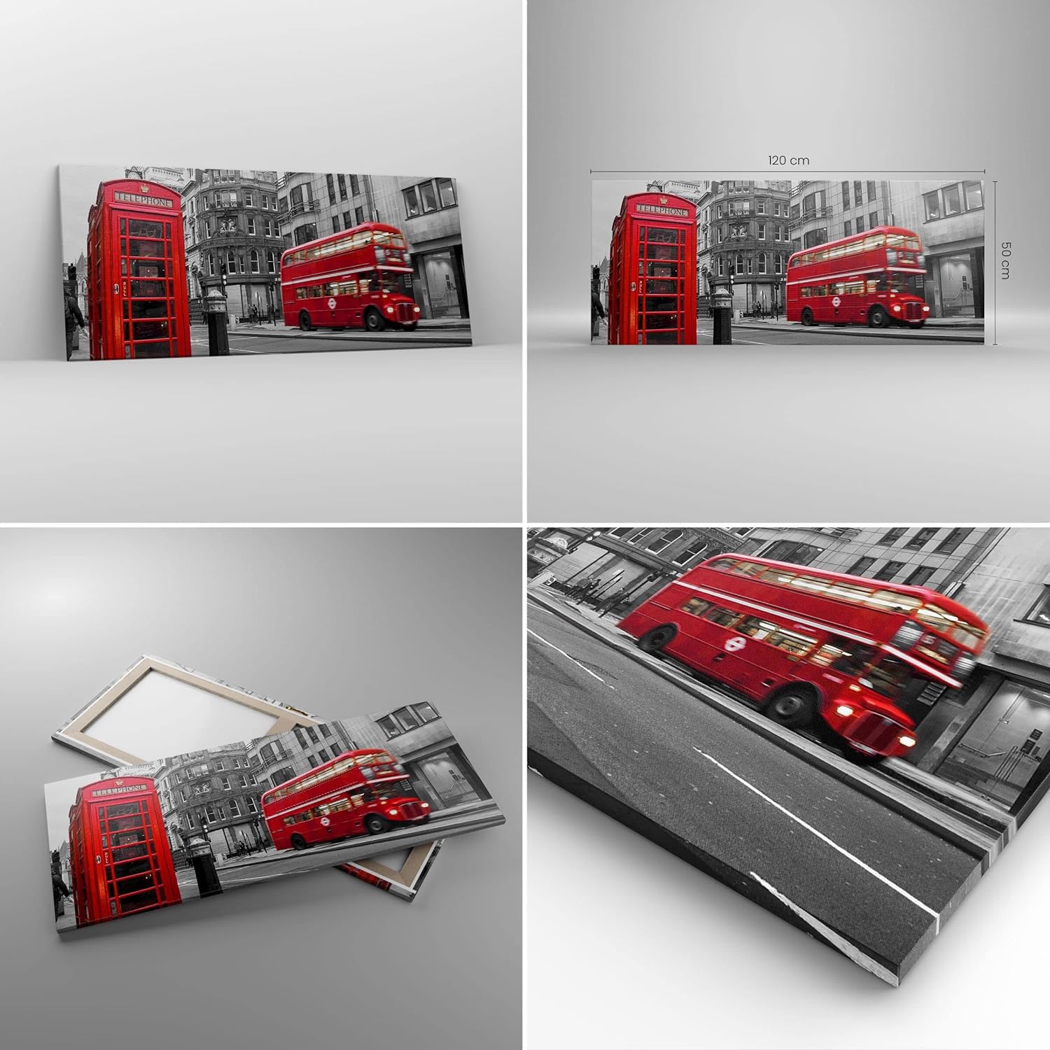 Wandbilder Dekoration Wohnzimmer Bus Telefon Strasse Panorama Bilder auf Leinwand 120x50cm Leinwandb