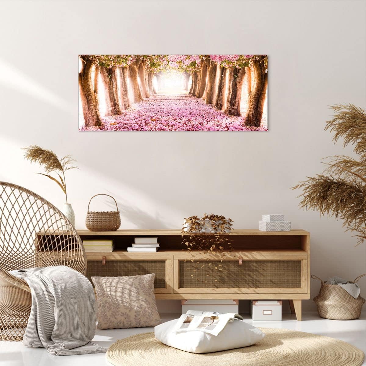 Wandbilder Dekoration Wohnzimmer Baum Blumen Kirsche Natur Panorama Bilder auf Leinwand 120x50cm Lei