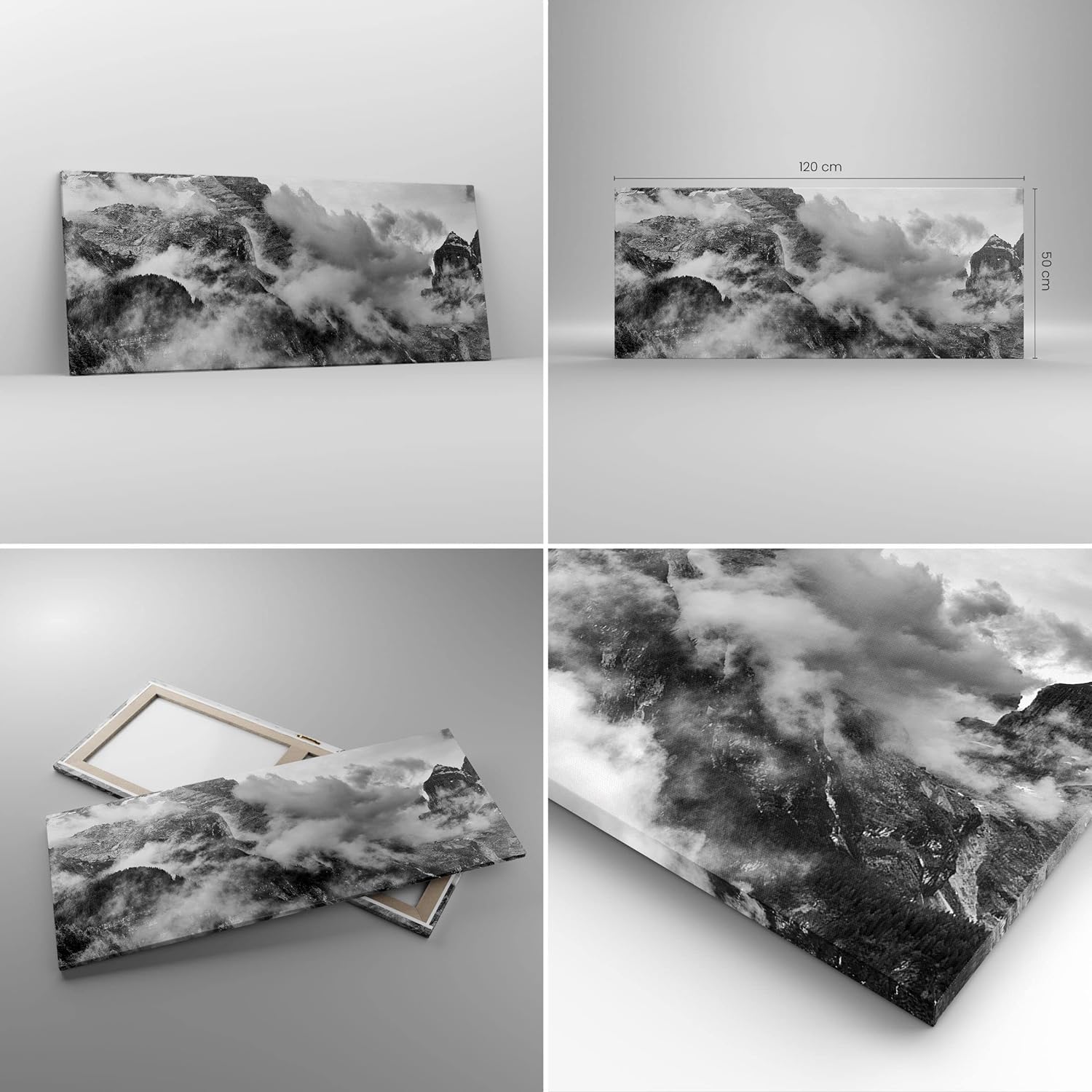 Wandbilder Dekoration Wohnzimmer Berge Nebel Gipfel Panorama Bilder auf Leinwand 120x50cm Leinwandbi