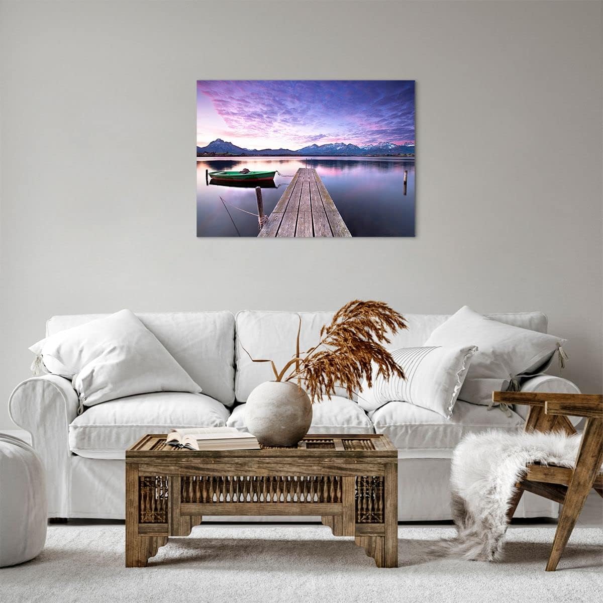 Bilder auf Leinwand See Berge Wasser Leinwandbild mit Rahmen 70x50cm Wandbilder Dekoration Wohnzimme