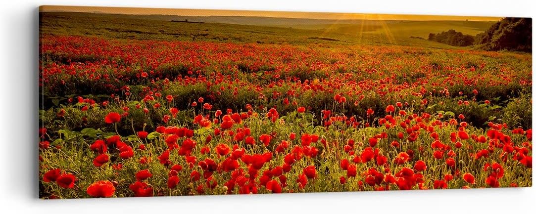 Panorama Bilder auf Leinwand Mohn Blume Wiese Leinwandbild mit Rahmen 90x30cm Wandbilder Dekoration