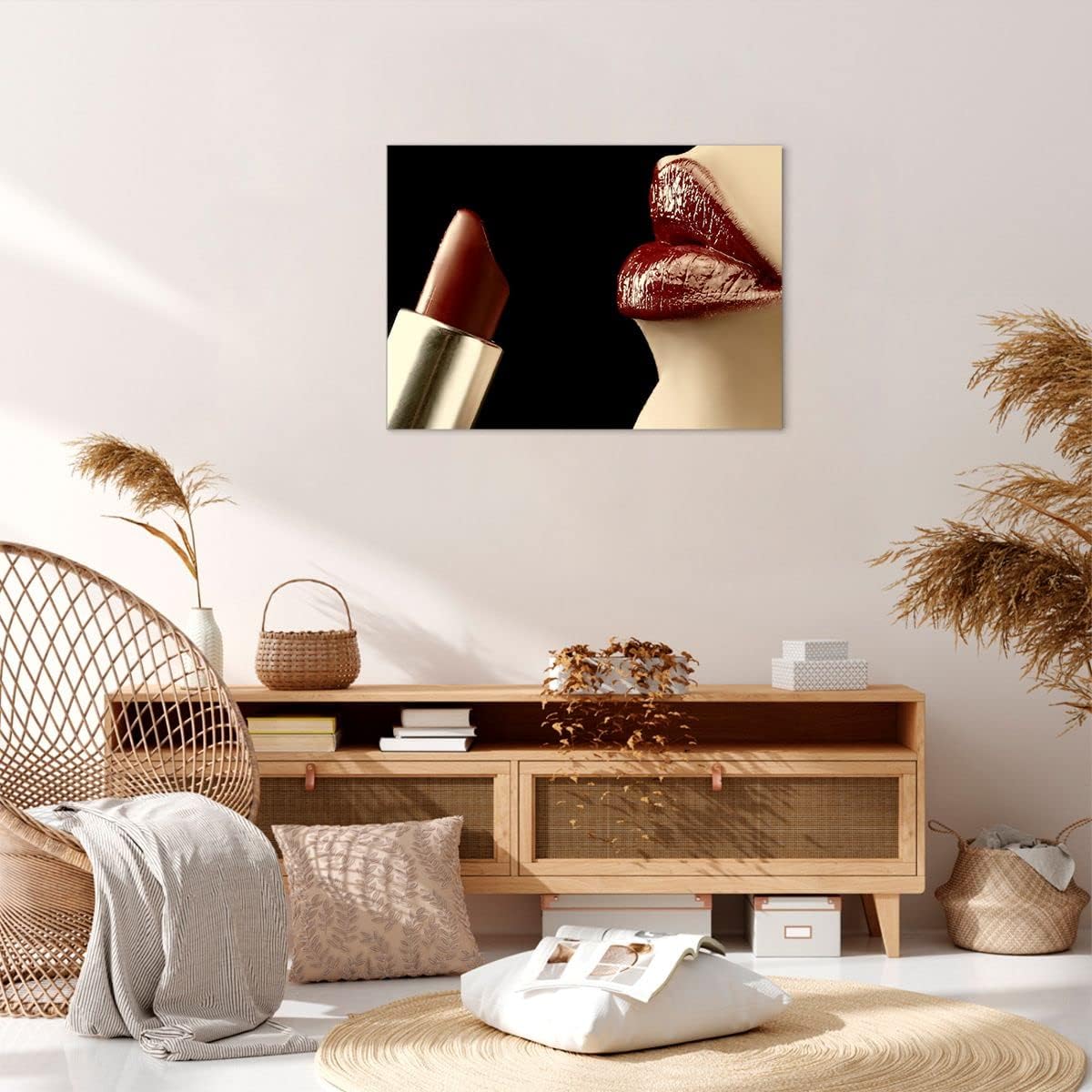Bilder auf Leinwand Frau rote Lippen Lippenstift Gesicht Leinwandbild 70x50cm Wandbilder Dekoration