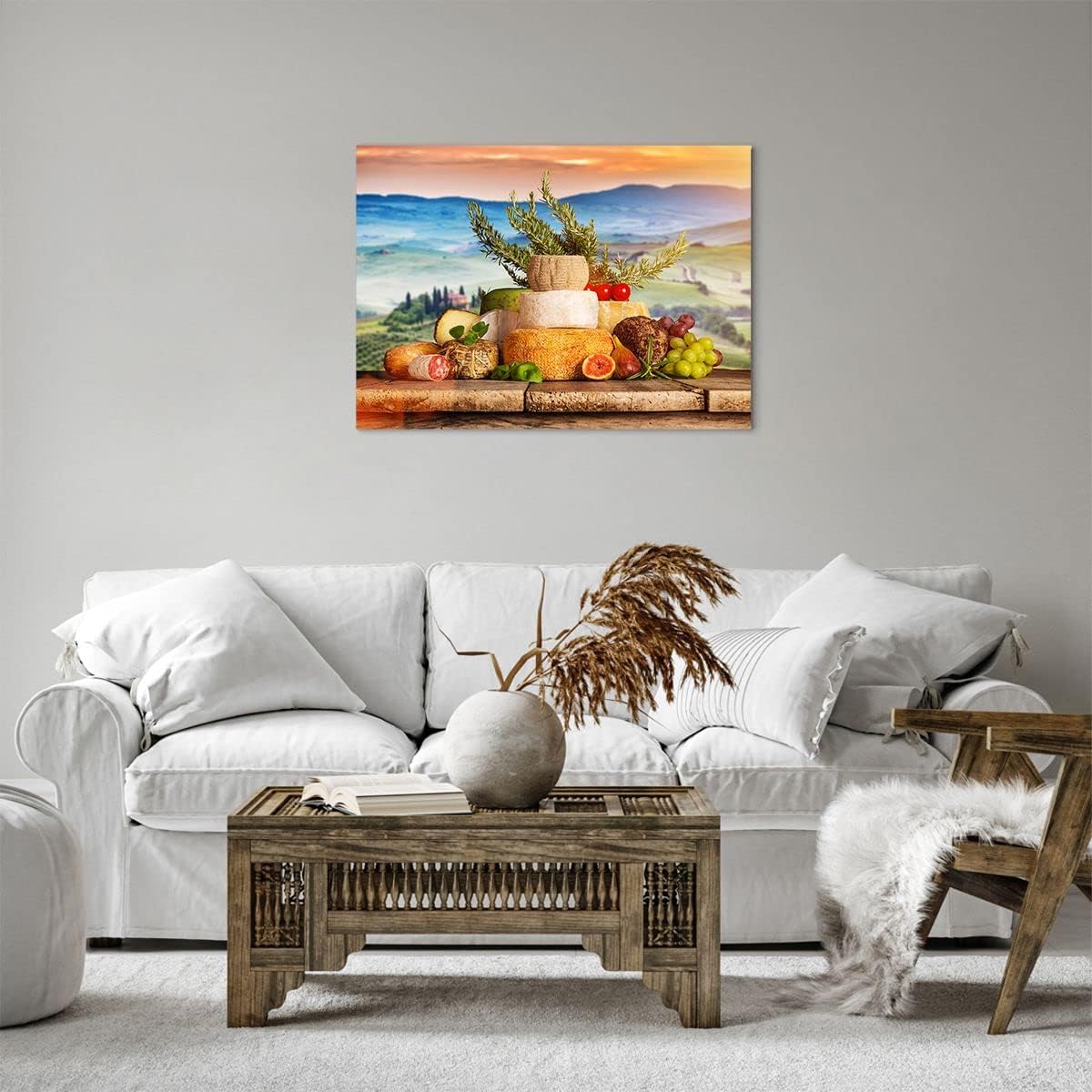 Bilder auf Leinwand Toskana Käse Obst Italien Leinwandbild 70x50cm Wandbilder Dekoration Wohnzimmer