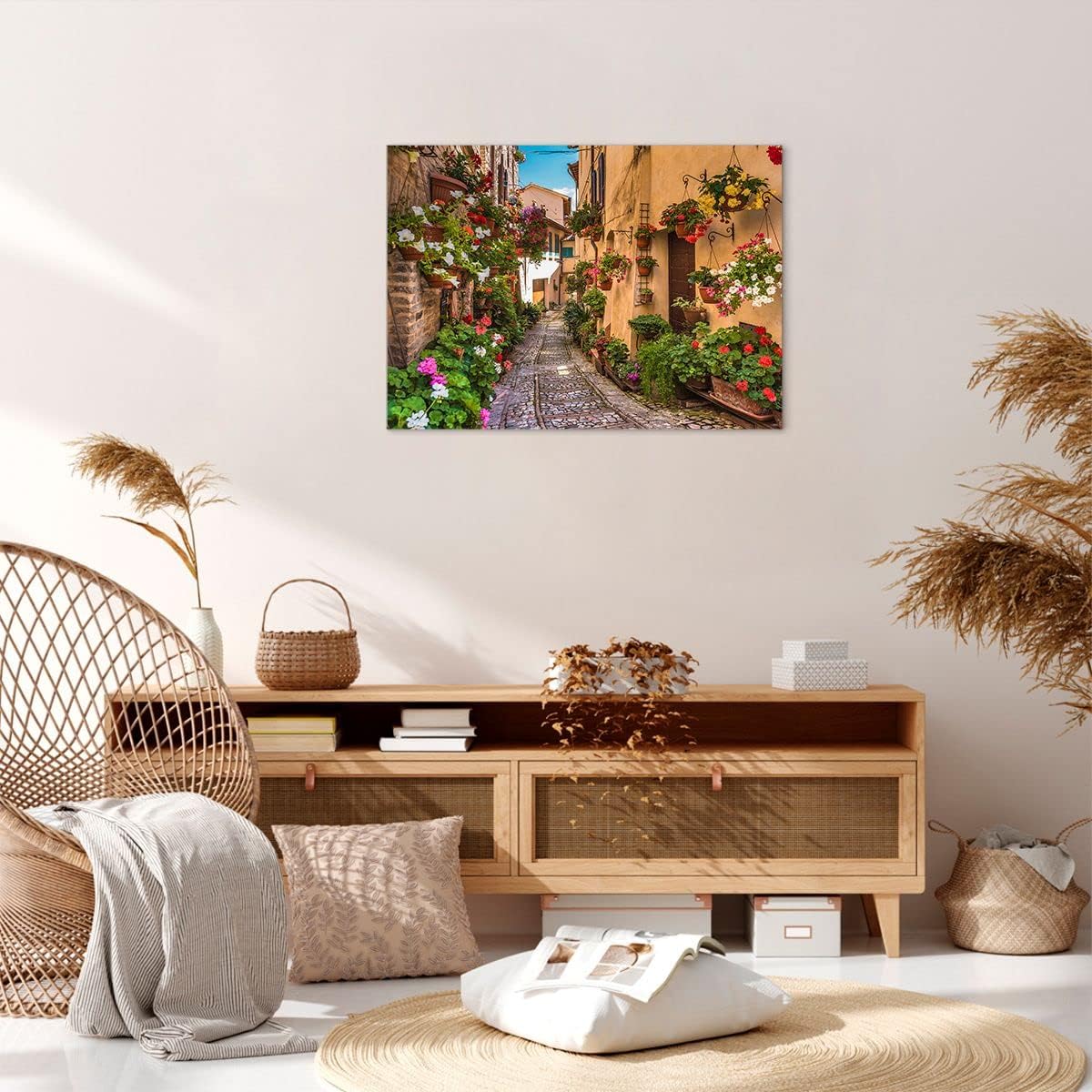 Bilder auf Leinwand Path Blumen Haus Hof Leinwandbild mit Rahmen 70x50cm Wandbilder Dekoration Wohnz
