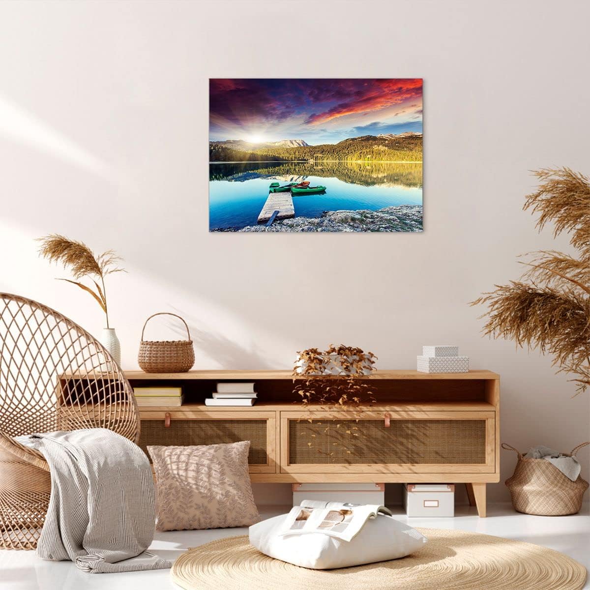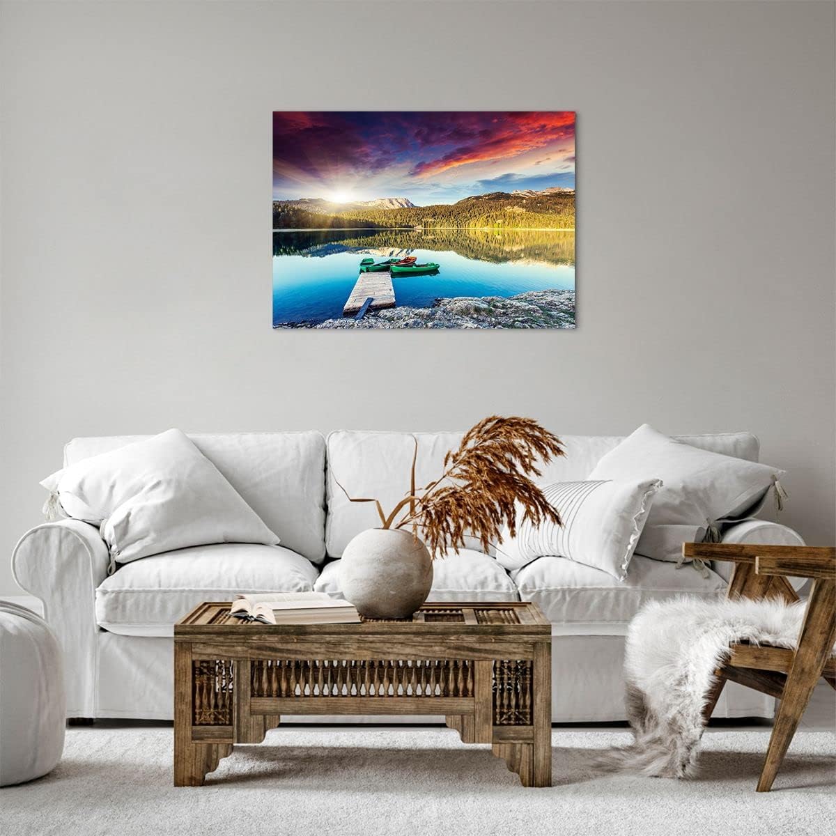 Bilder auf Leinwand See Berge Wasser Leinwandbild mit Rahmen 70x50cm Wandbilder Dekoration Wohnzimme