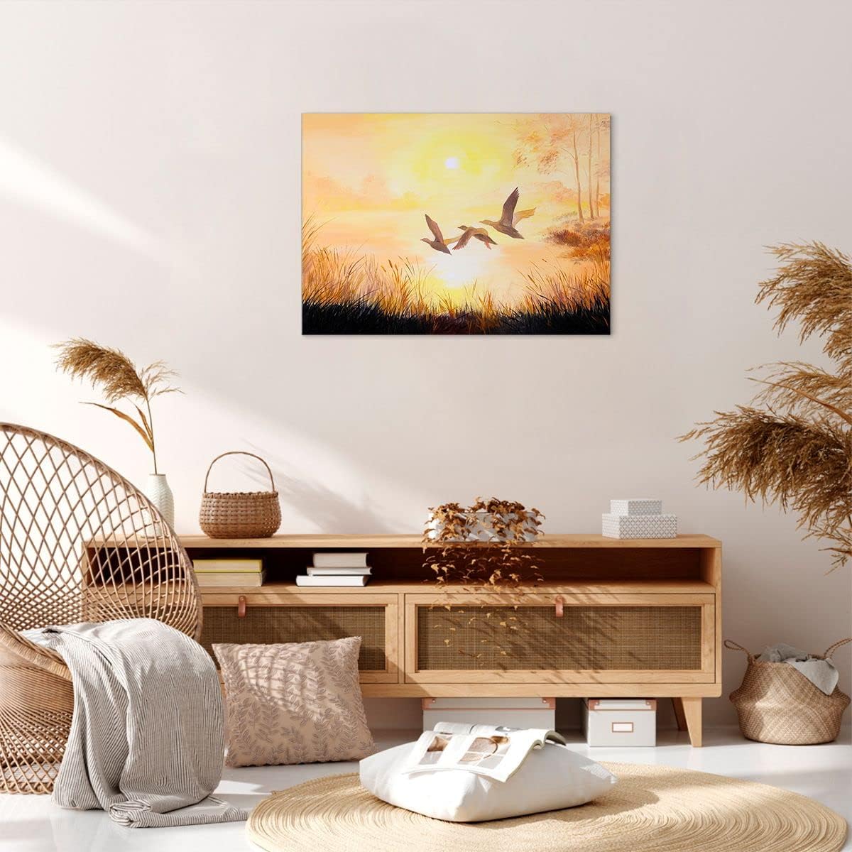 Bilder auf Leinwand Vogel Natur Wasser Leinwandbild mit Rahmen 70x50cm Wandbilder Dekoration Wohnzim