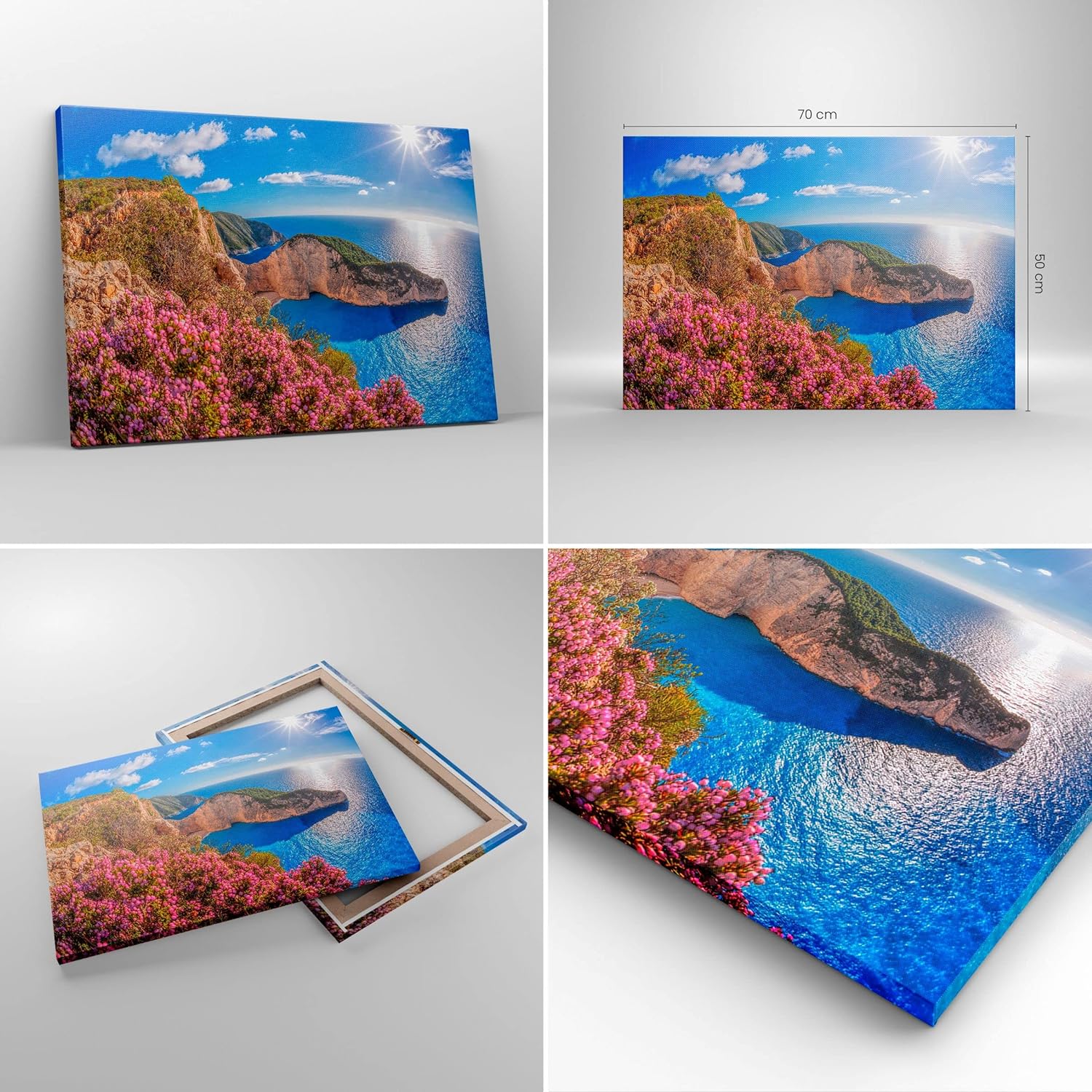Bilder auf Leinwand Meer Sommer Blume Leinwandbild mit Rahmen 70x50cm Wandbilder Dekoration Wohnzimm