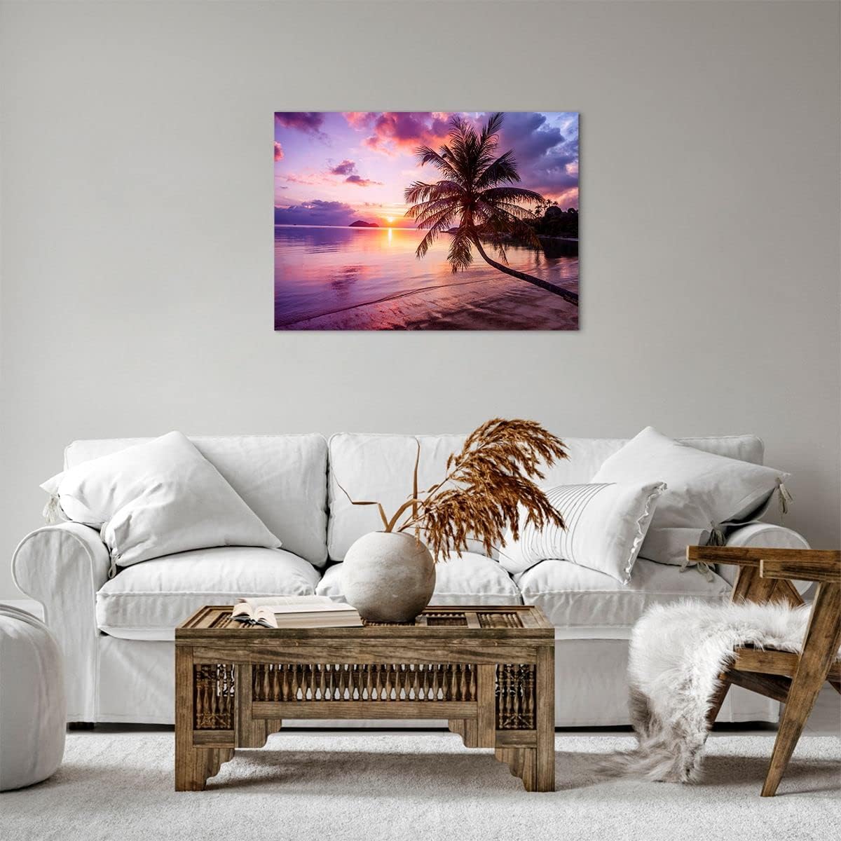 Bilder auf Leinwand Strand Meer Palme Leinwandbild mit Rahmen 70x50cm Wandbilder Dekoration Wohnzimm