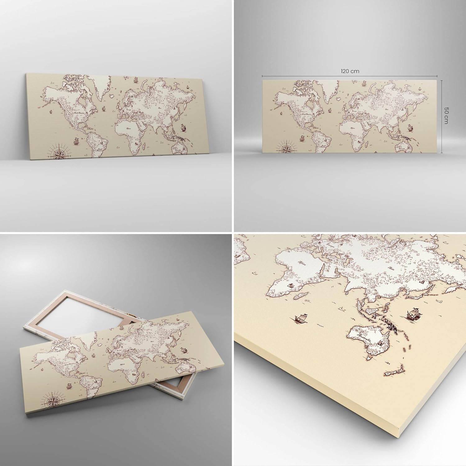 Wandbilder Dekoration Wohnzimmer Karte Welt Klassiker Kontinente Panorama Bilder auf Leinwand 120x50