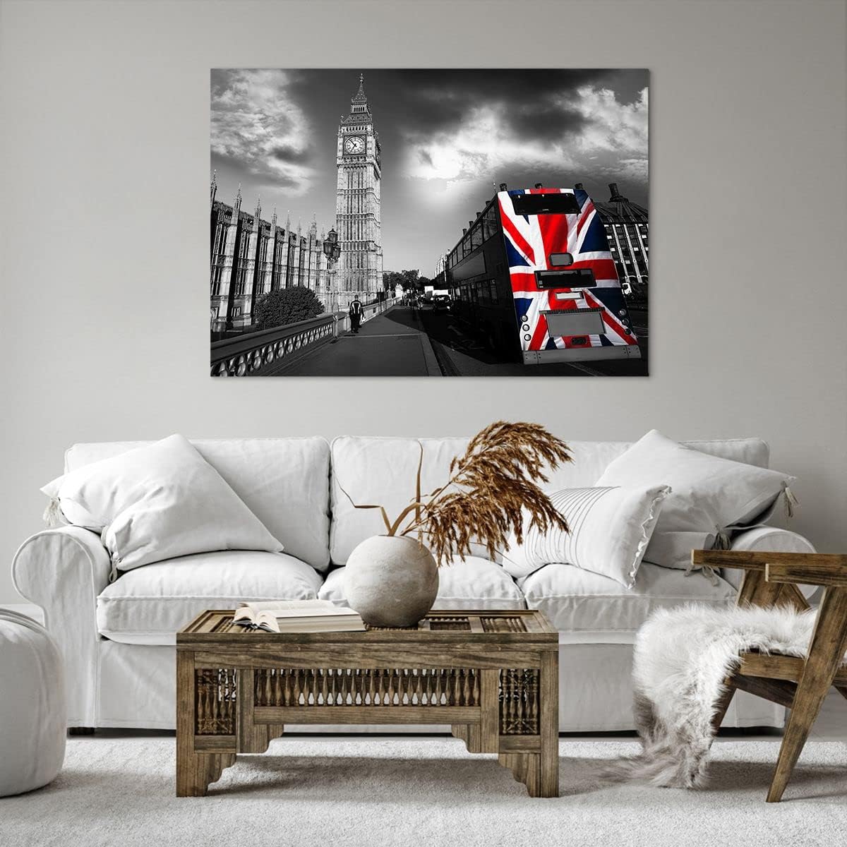 Bilder auf Leinwand 100x70cm Leinwandbild Bus London Big Ben Gebäude Gross Wanddeko Bild Schlafzimme