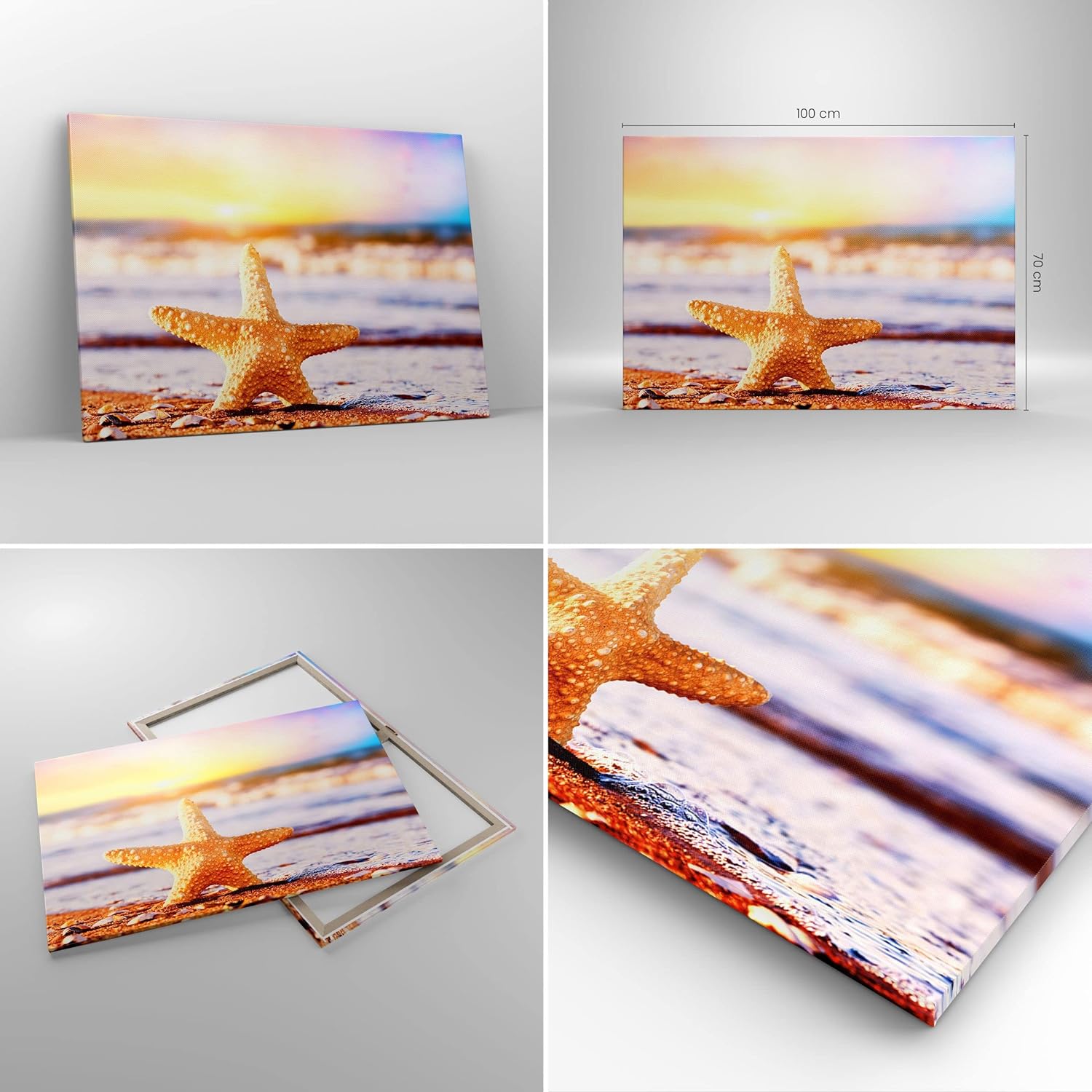 Bilder auf Leinwand 100x70cm Leinwandbild Starfish Strand Sand Ozean Gross Wanddeko Bild Schlafzimme