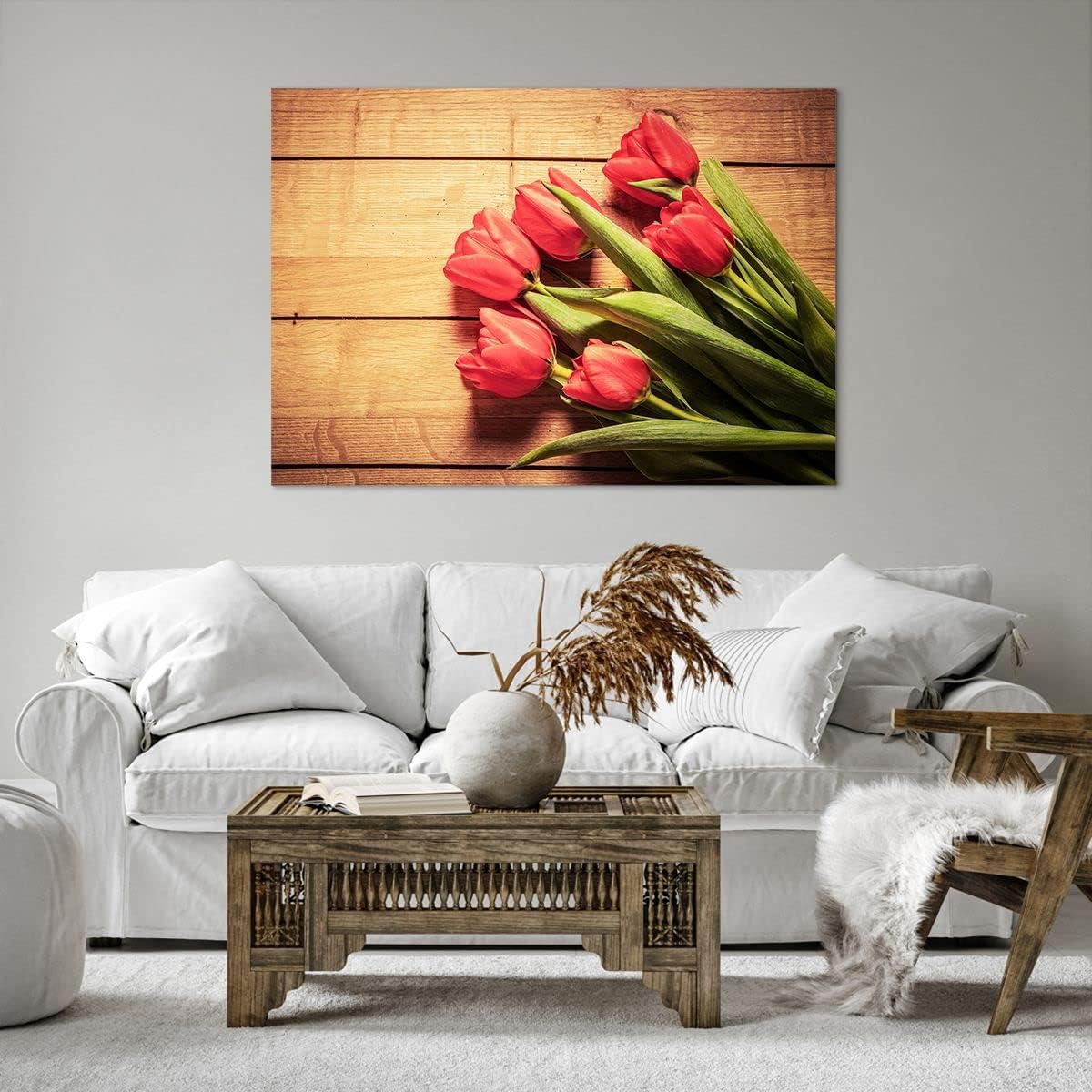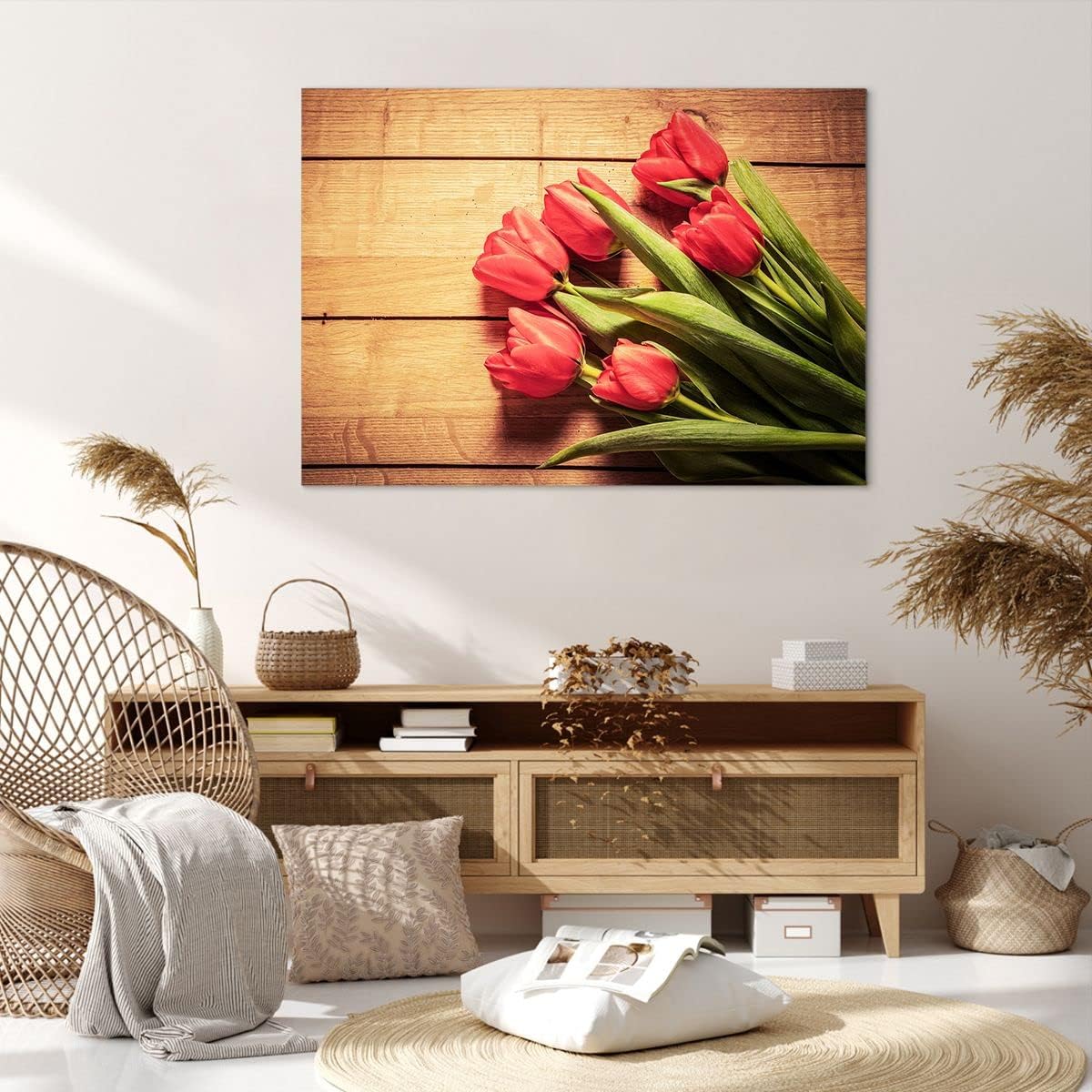 Bilder auf Leinwand 100x70cm Leinwandbild Tulpen Blumenstrauss Sommer Garten Gross Wanddeko Bild Sch