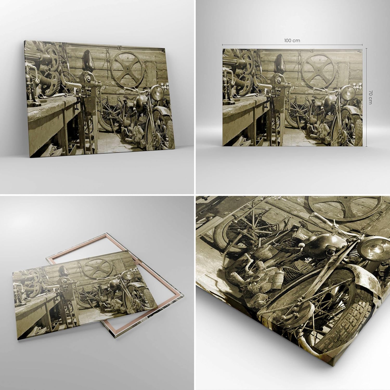 Bilder auf Leinwand 100x70cm Leinwandbild mit Rahmen Werkstatt Motor Gross Wanddeko Bild Schlafzimme