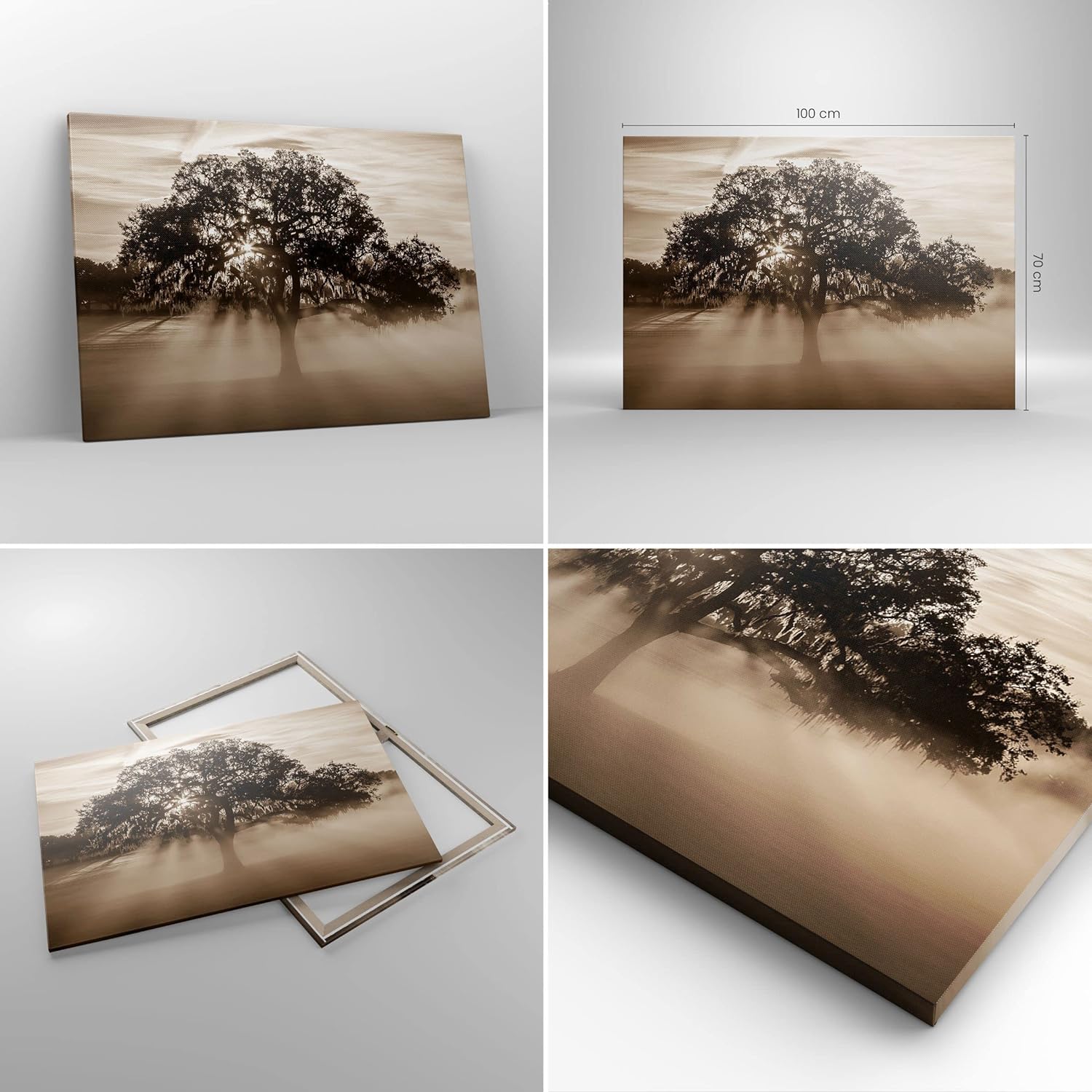 Bilder auf Leinwand 100x70cm Leinwandbild mit Rahmen Baum Feld Natur Gross Wanddeko Bild Schlafzimme