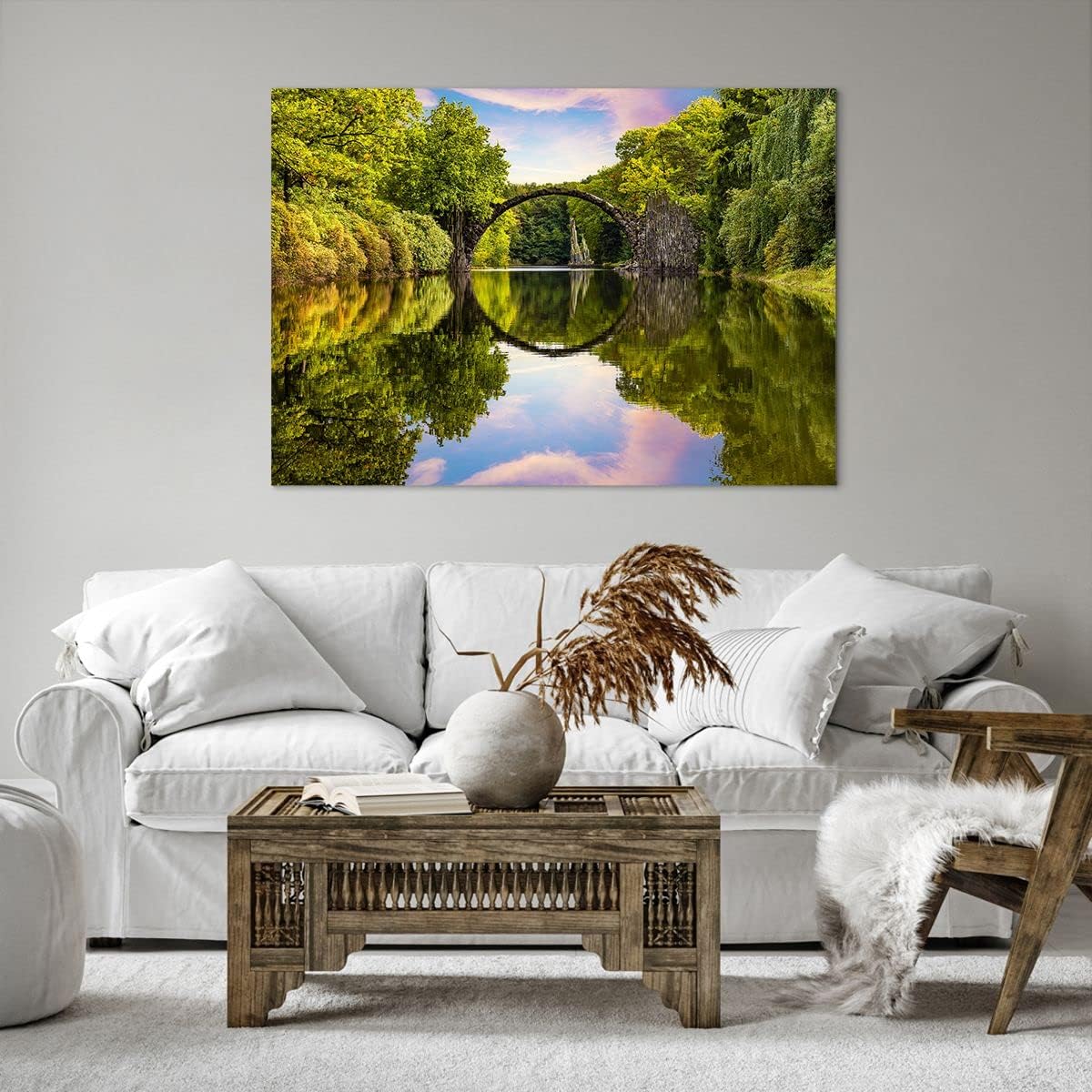 Bilder auf Leinwand 100x70cm Leinwandbild mit Rahmen Park Natur Wasser Gross Wanddeko Bild Schlafzim