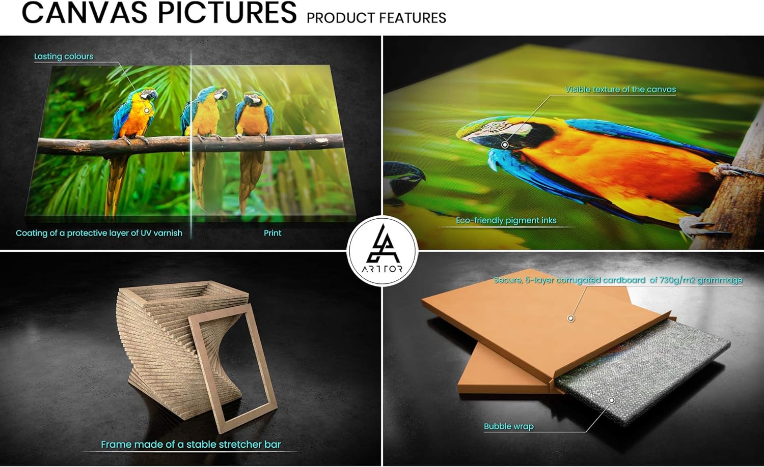 • Unsere ARTTOR Wanddeko schmückt buchstäblich jeden Raum. Die Seiten und Kanten sind bedruckt, wodurch eine Fortsetzung des Bildes entsteht, wodurch die Ästhetik der Verarbeitung verbessert und ein wunderbarer visueller Effekt erzielt wird. Wir