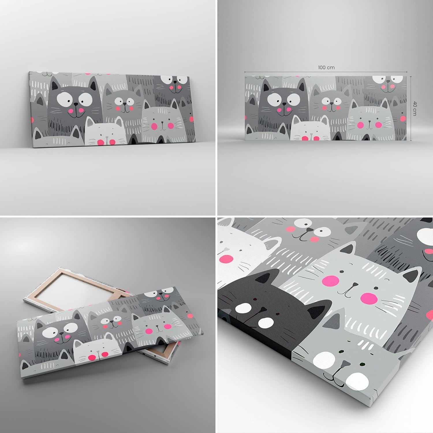 Panorama Bilder auf Leinwand 100x40cm Leinwandbild Kittys Tiere Illustration Gross Wanddeko Bild Sch