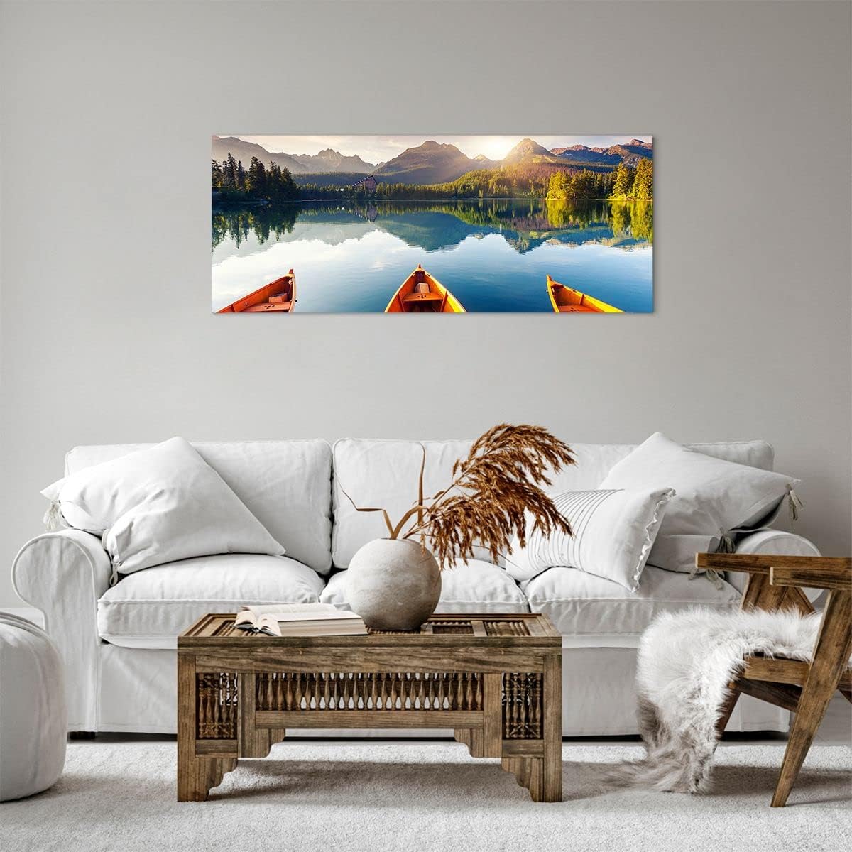 Panorama Bilder auf Leinwand 100x40cm Leinwandbild mit Rahmen See Natur Gross Wanddeko Bild Schlafzi