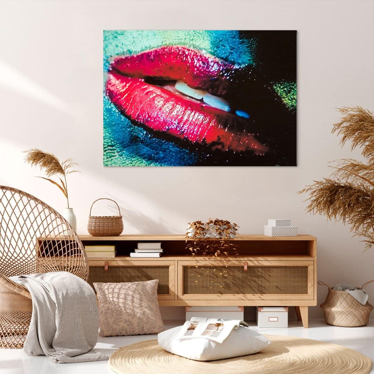 Bilder auf Leinwand 100x70cm Leinwandbild mit Rahmen Lippen Gesicht Frau Gross Wanddeko Bild Schlafz