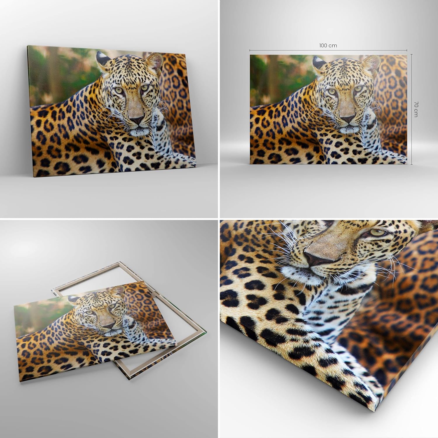 Bilder auf Leinwand 100x70cm Leinwandbild Leopardpanther Katze Tier Savanne Gross Wanddeko Bild Schl