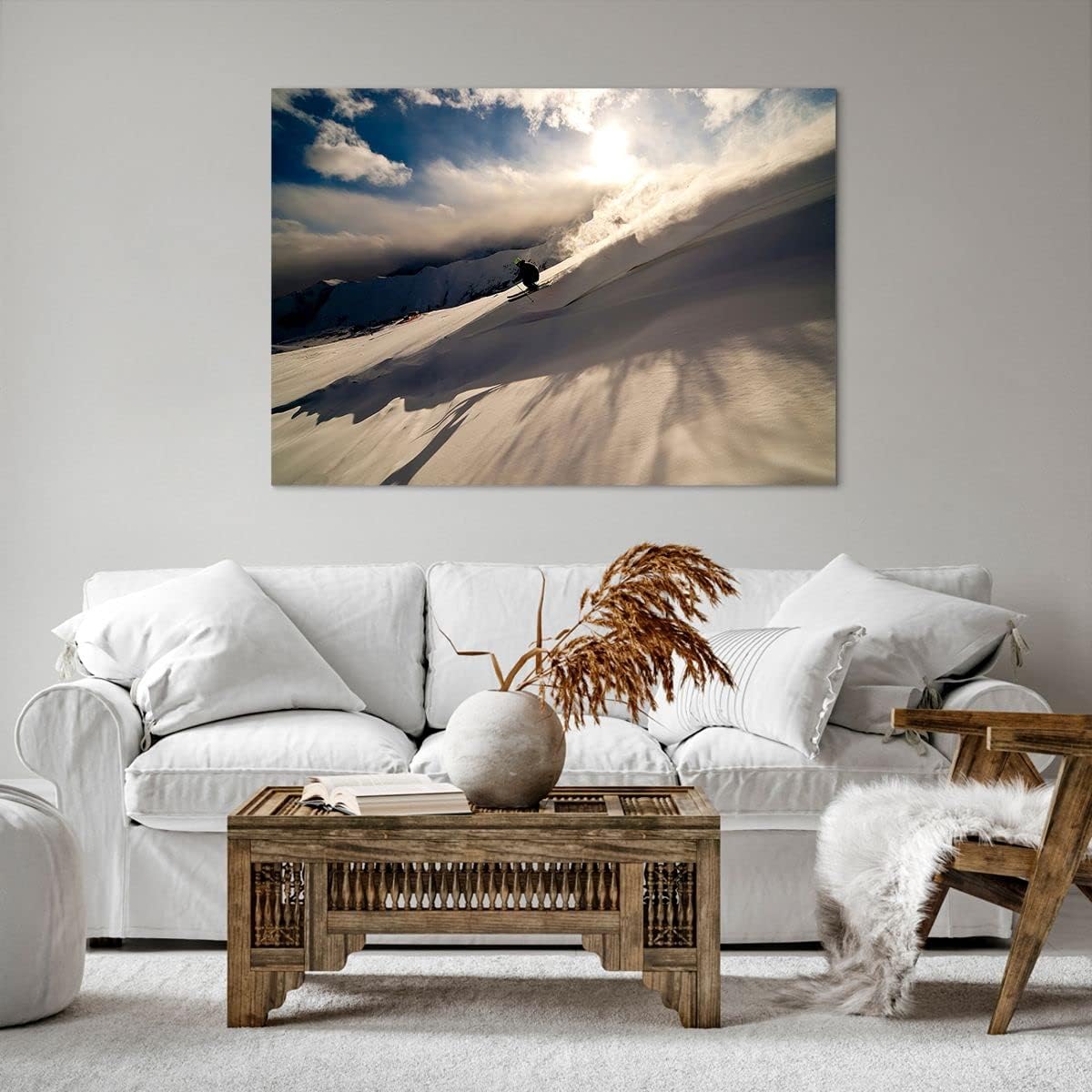 Bilder auf Leinwand 100x70cm Leinwandbild mit Rahmen Berge Ski Winter Gross Wanddeko Bild Schlafzimm