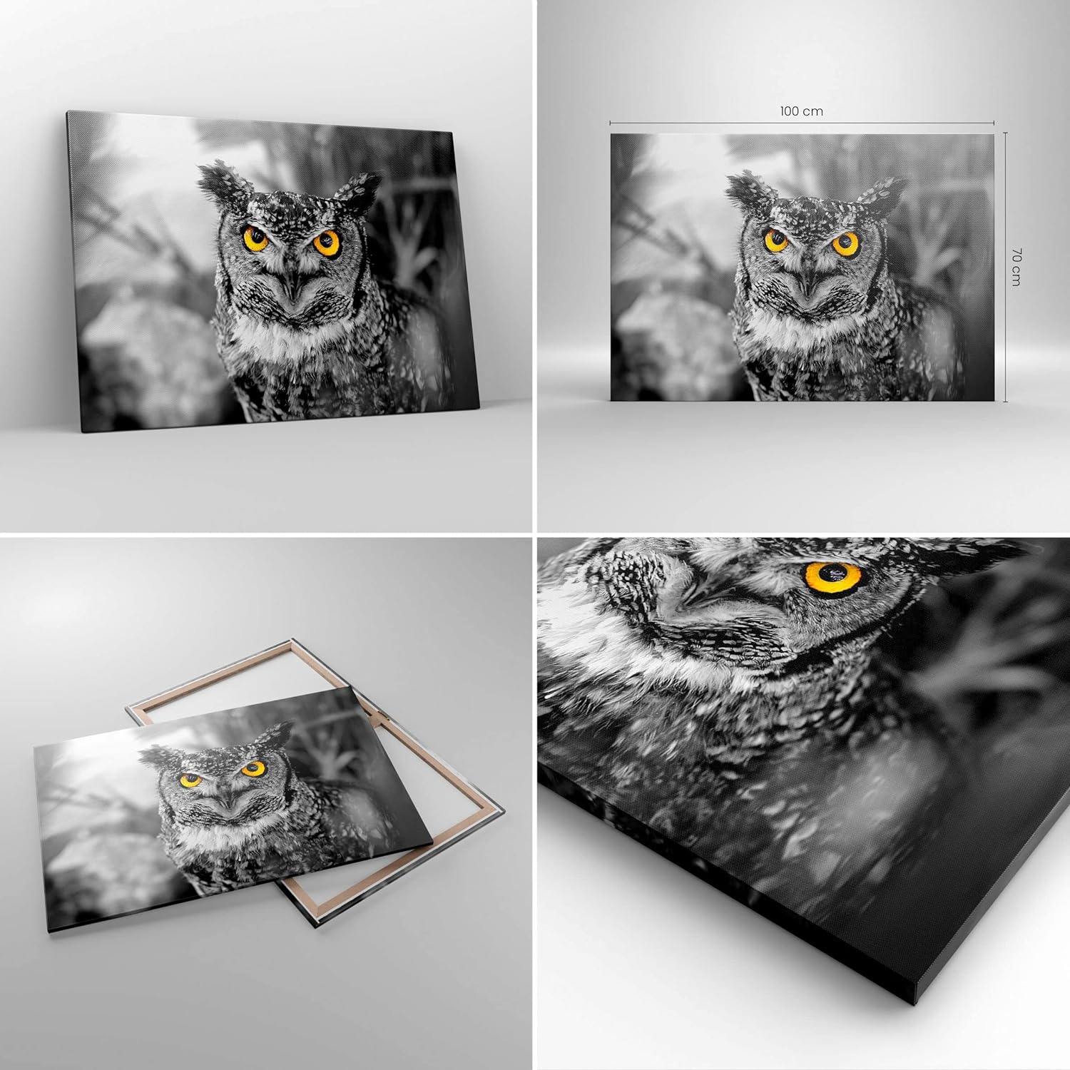 Bilder auf Leinwand 100x70cm Leinwandbild mit Rahmen Eule Vogel Natur Gross Wanddeko Bild Schlafzimm
