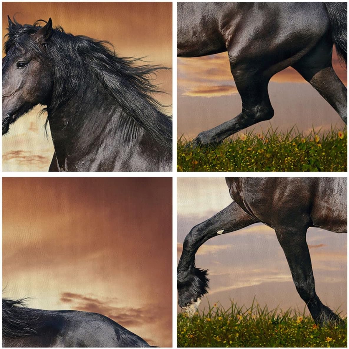 Bilder auf Leinwand 100x70cm Leinwandbild mit Rahmen Pferd Tier Wiese Gross Wanddeko Bild Schlafzimm