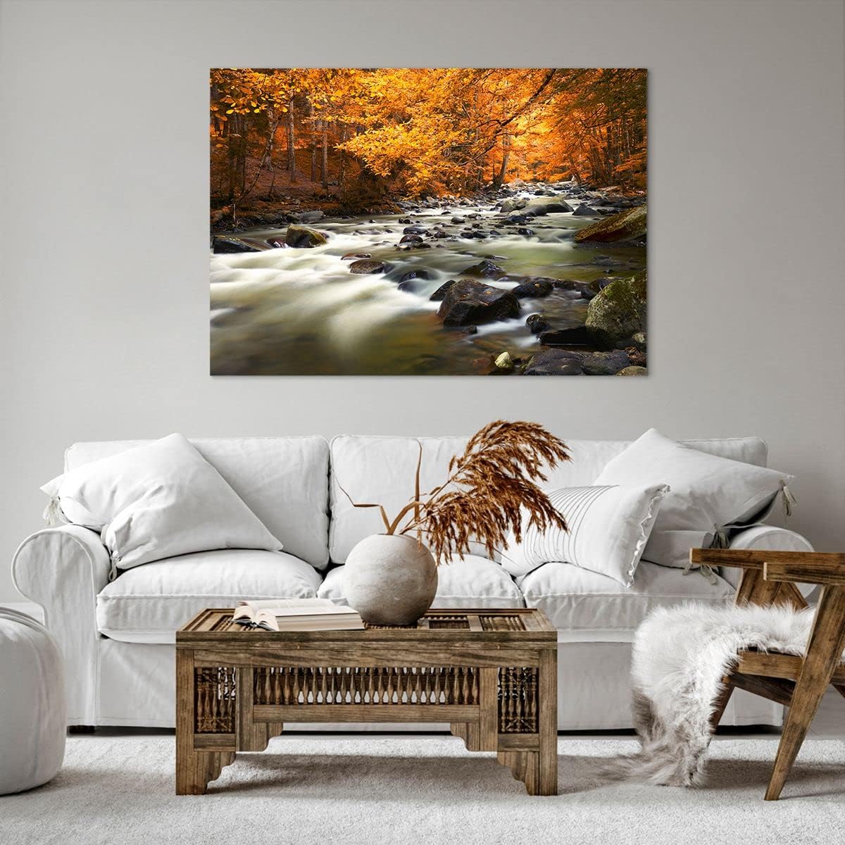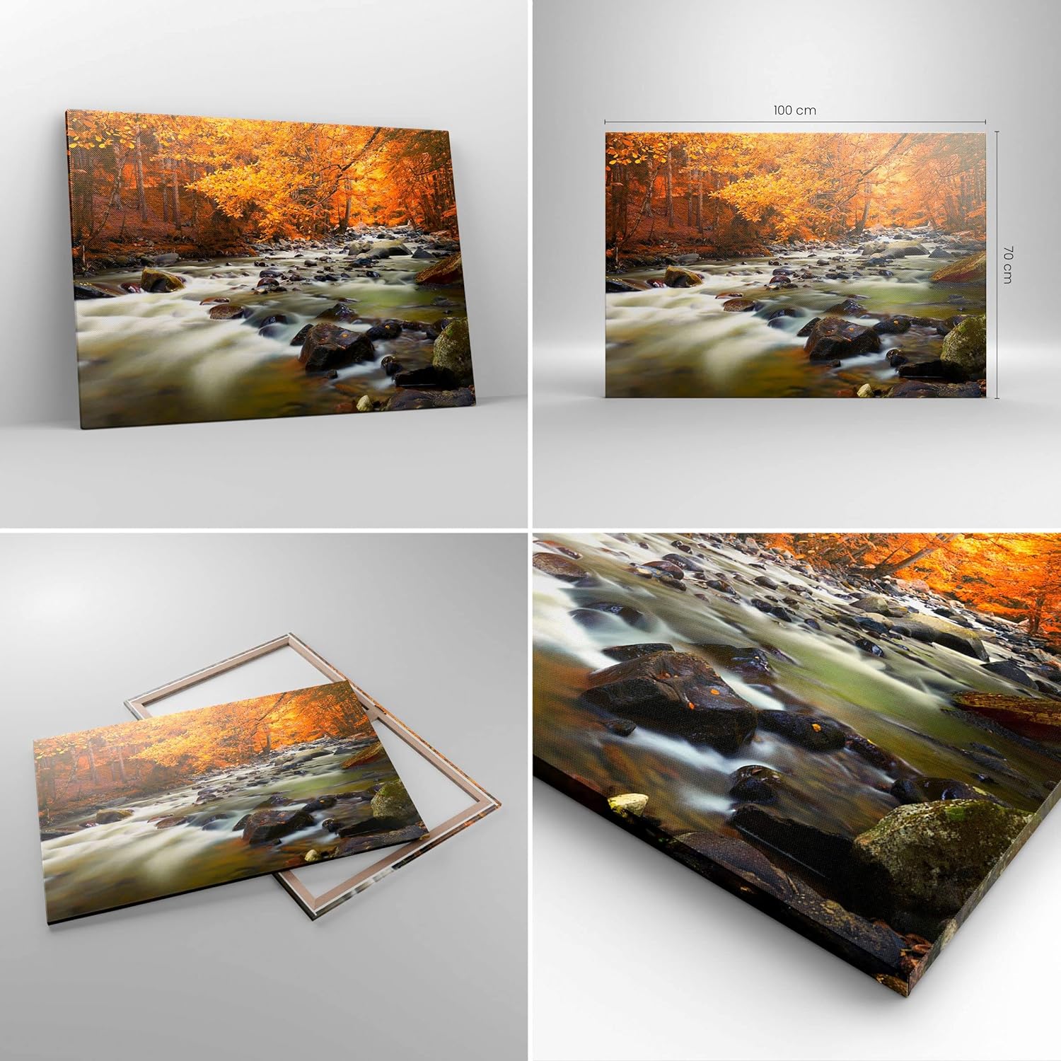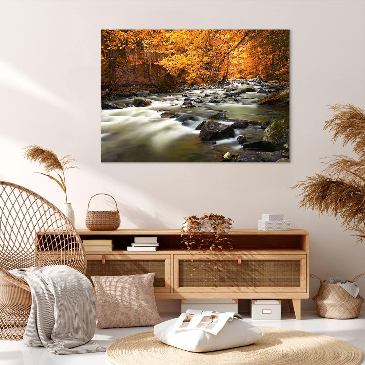 Bilder auf Leinwand 100x70cm Leinwandbild Stream Herbst Forrest Berg Gross Wanddeko Bild Schlafzimme