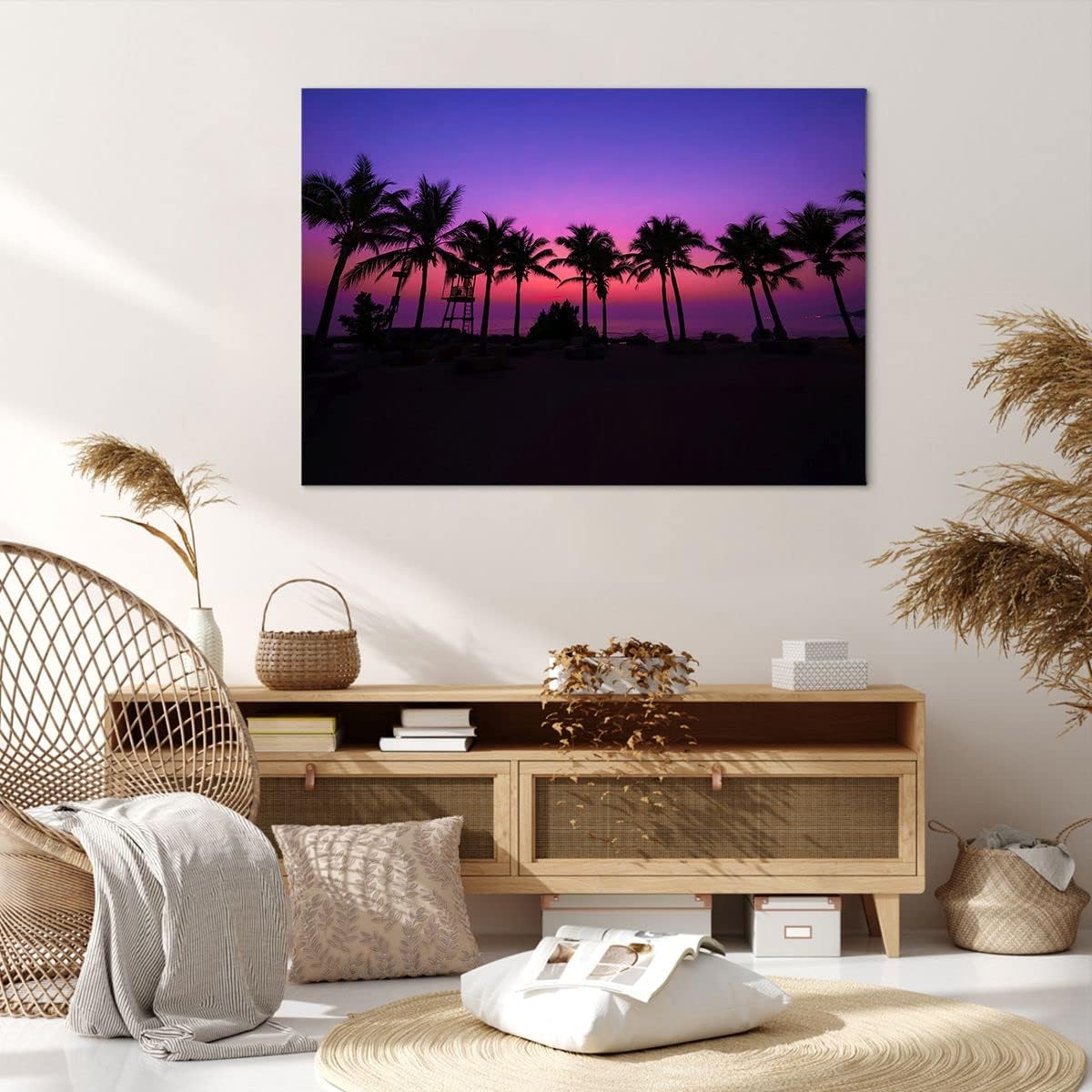 Bilder auf Leinwand 100x70cm Leinwandbild Sonnenuntergang dämmerung sonne palme Gross Wanddeko Bild