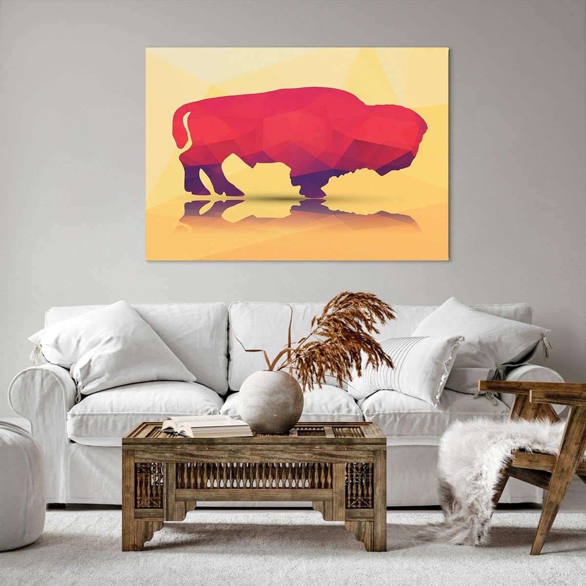 Bilder auf Leinwand 100x70cm Leinwandbild Bison Illustration Bunt Grafik Gross Wanddeko Bild Schlafz