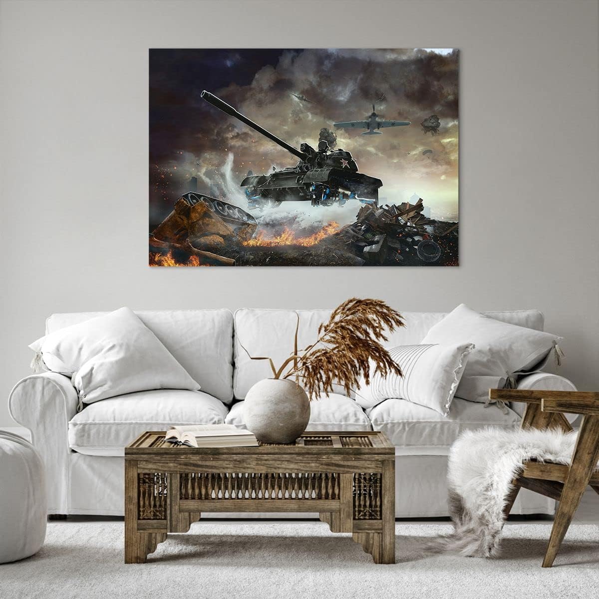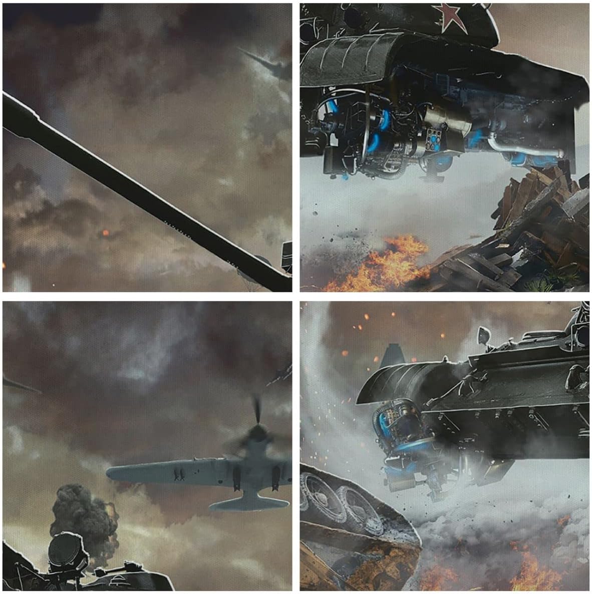 Bilder auf Leinwand 100x70cm Leinwandbild Krieg Panzer Airplain Schlacht Gross Wanddeko Bild Schlafz