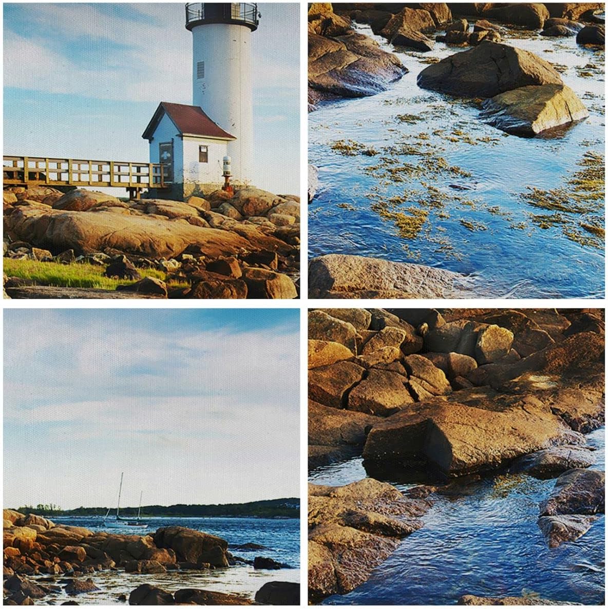 Bilder auf Leinwand 100x70cm Leinwandbild Leuchtturm Ufer Wolke Landschaft Gross Wanddeko Bild Schla