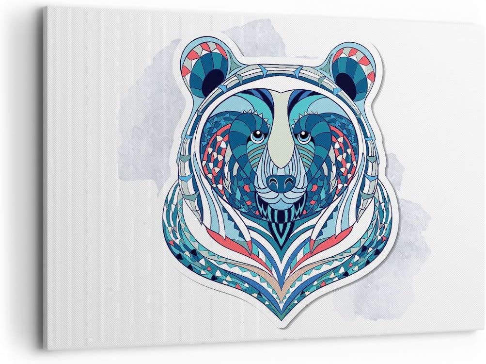 Bilder auf Leinwand 100x70cm Leinwandbild Bär Illustration Traum blumig Gross Wanddeko Bild Schlafzi