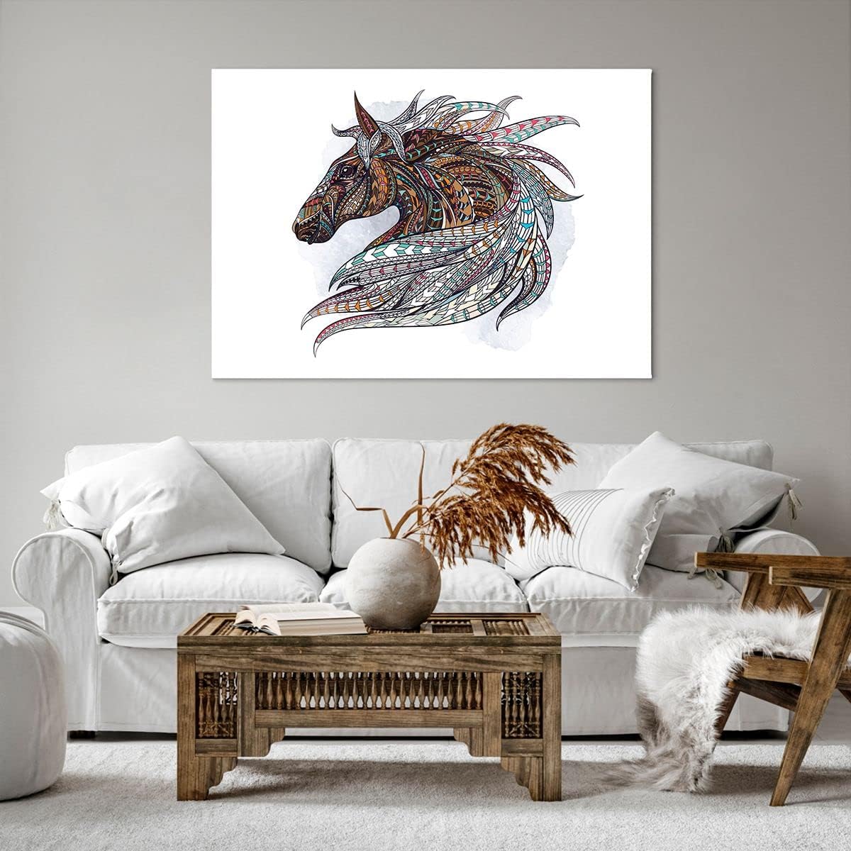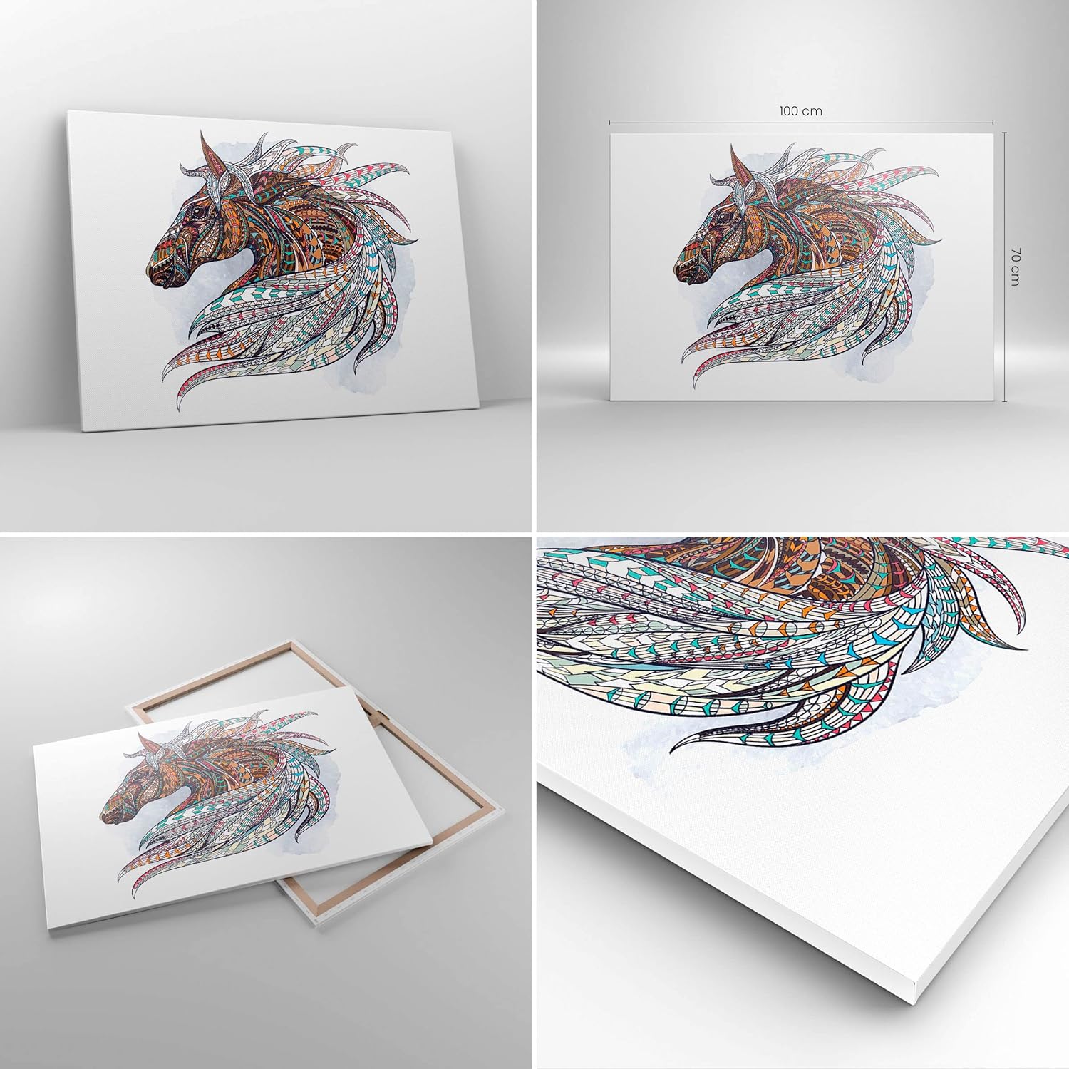 Bilder auf Leinwand 100x70cm Leinwandbild Pferd Eleganz Grafik Kopf Gross Wanddeko Bild Schlafzimmer