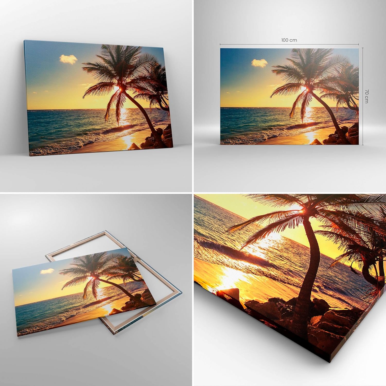 Bilder auf Leinwand 100x70cm Leinwandbild Wolke exotischer Palm- Landschaft Gross Wanddeko Bild Schl