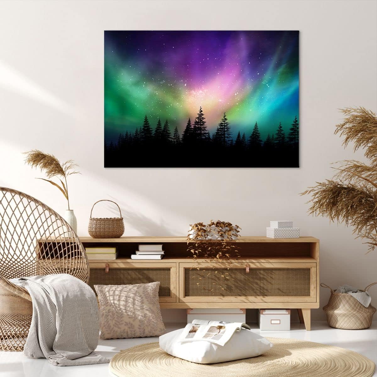 Bilder auf Leinwand 100x70cm Leinwandbild mit Rahmen Aurora Polar Nacht Gross Wanddeko Bild Schlafzi