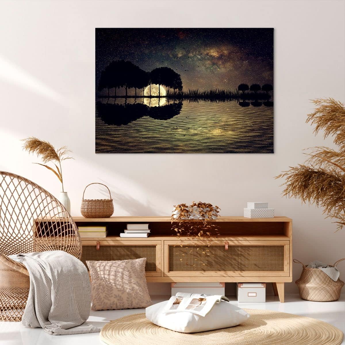 Bilder auf Leinwand 100x70cm Leinwandbild mit Rahmen See Nacht Wasser Gross Wanddeko Bild Schlafzimm