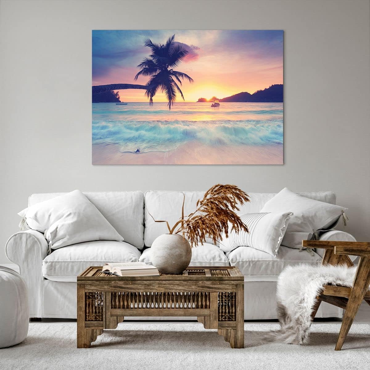 Bilder auf Leinwand 100x70cm Leinwandbild mit Rahmen Meer Strand Palme Gross Wanddeko Bild Schlafzim