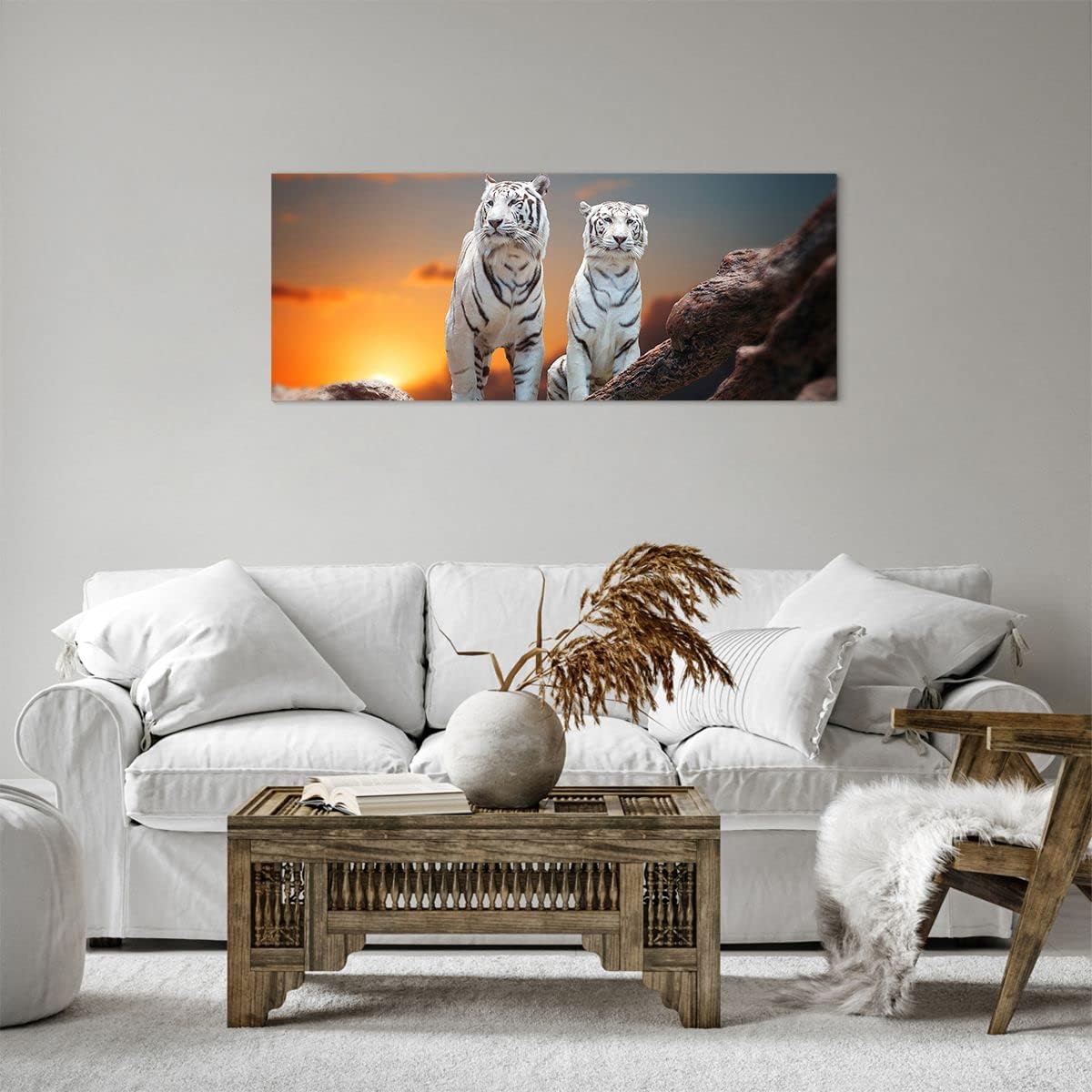 Panorama Bilder auf Leinwand 100x40cm Leinwandbild Tiger weiss Rock Sonnenuntergang Gross Wanddeko B