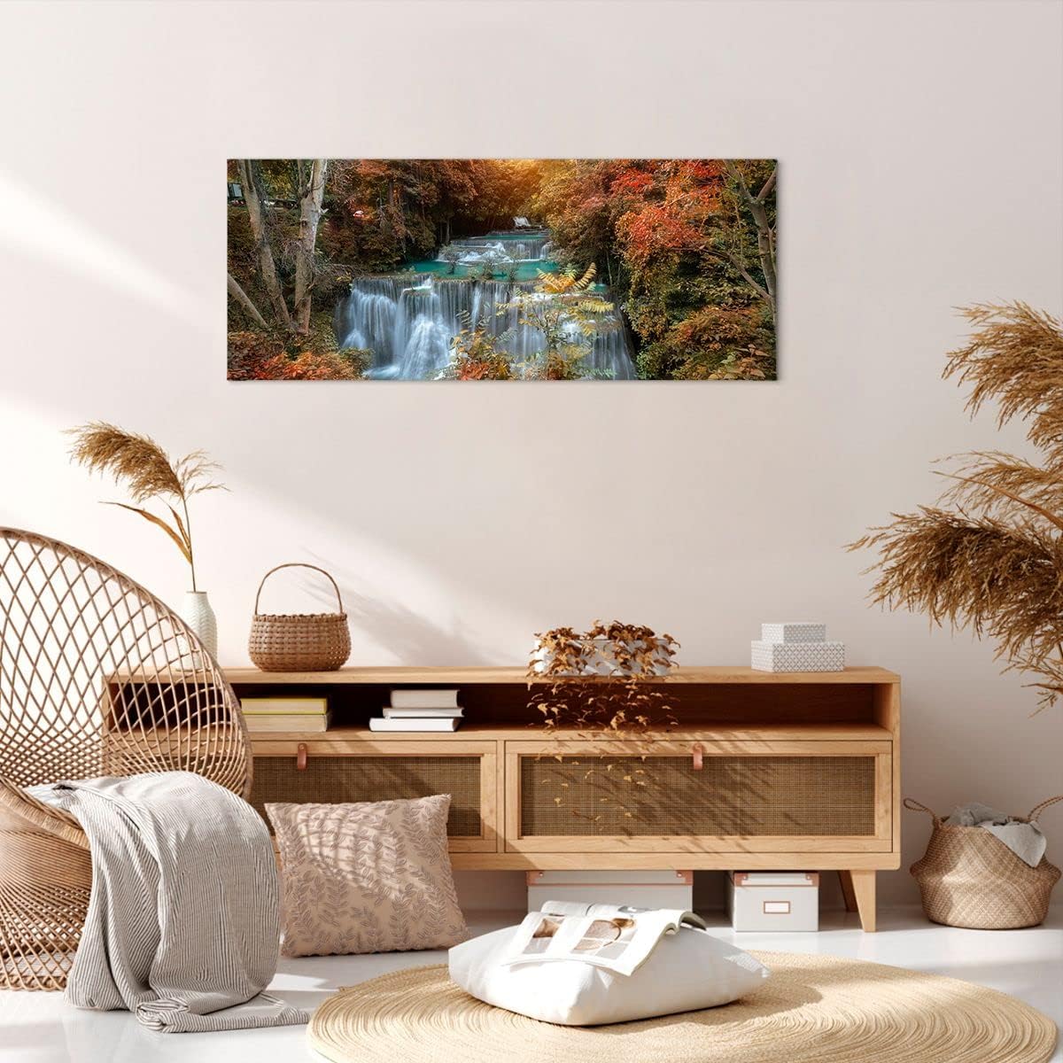 Panorama Bilder auf Leinwand 100x40cm Leinwandbild Park Wasserfall Wasser Gross Wanddeko Bild Schlaf