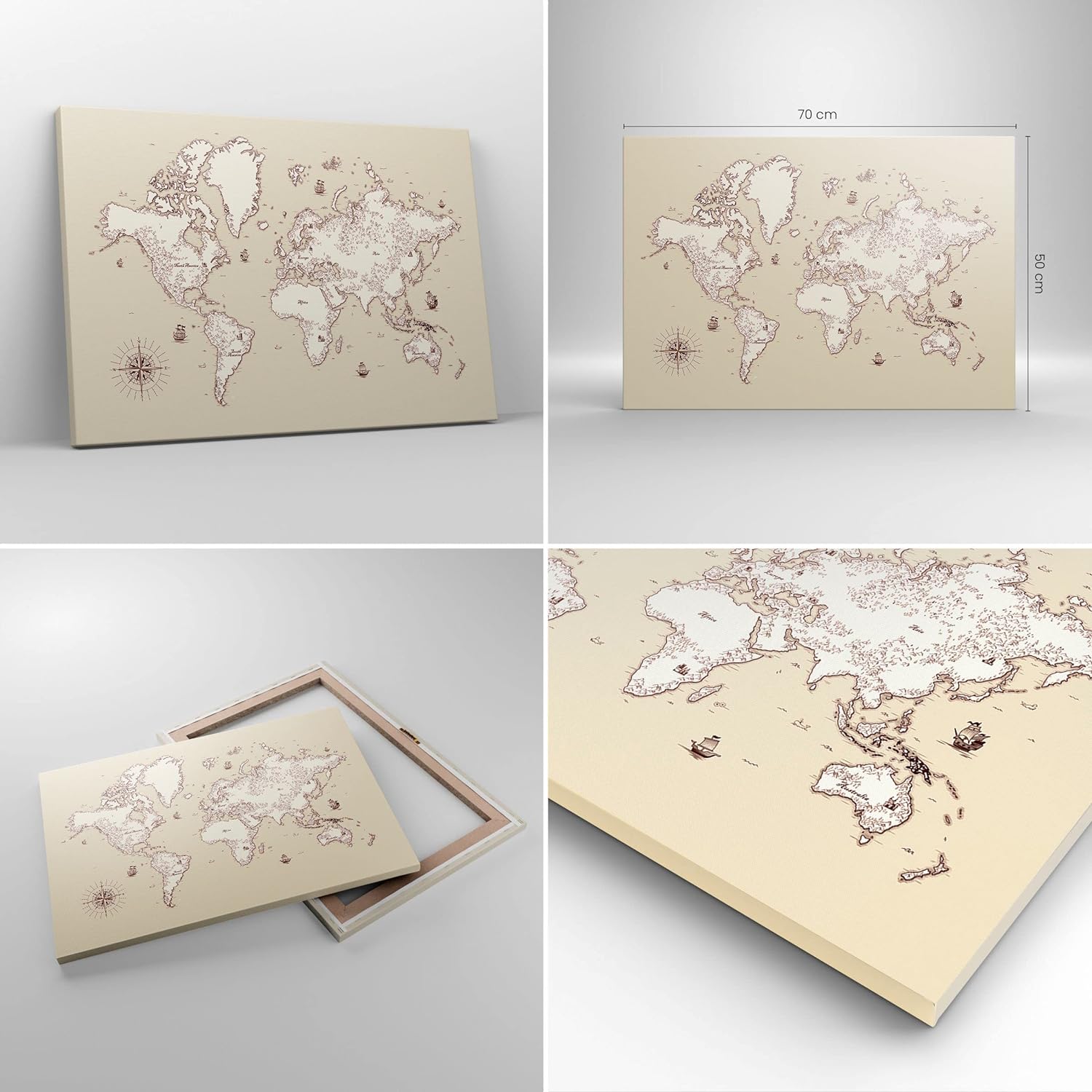Bilder auf Leinwand Karte Welt Klassiker Kontinente Leinwandbild 70x50cm Wandbilder Dekoration Wohnz