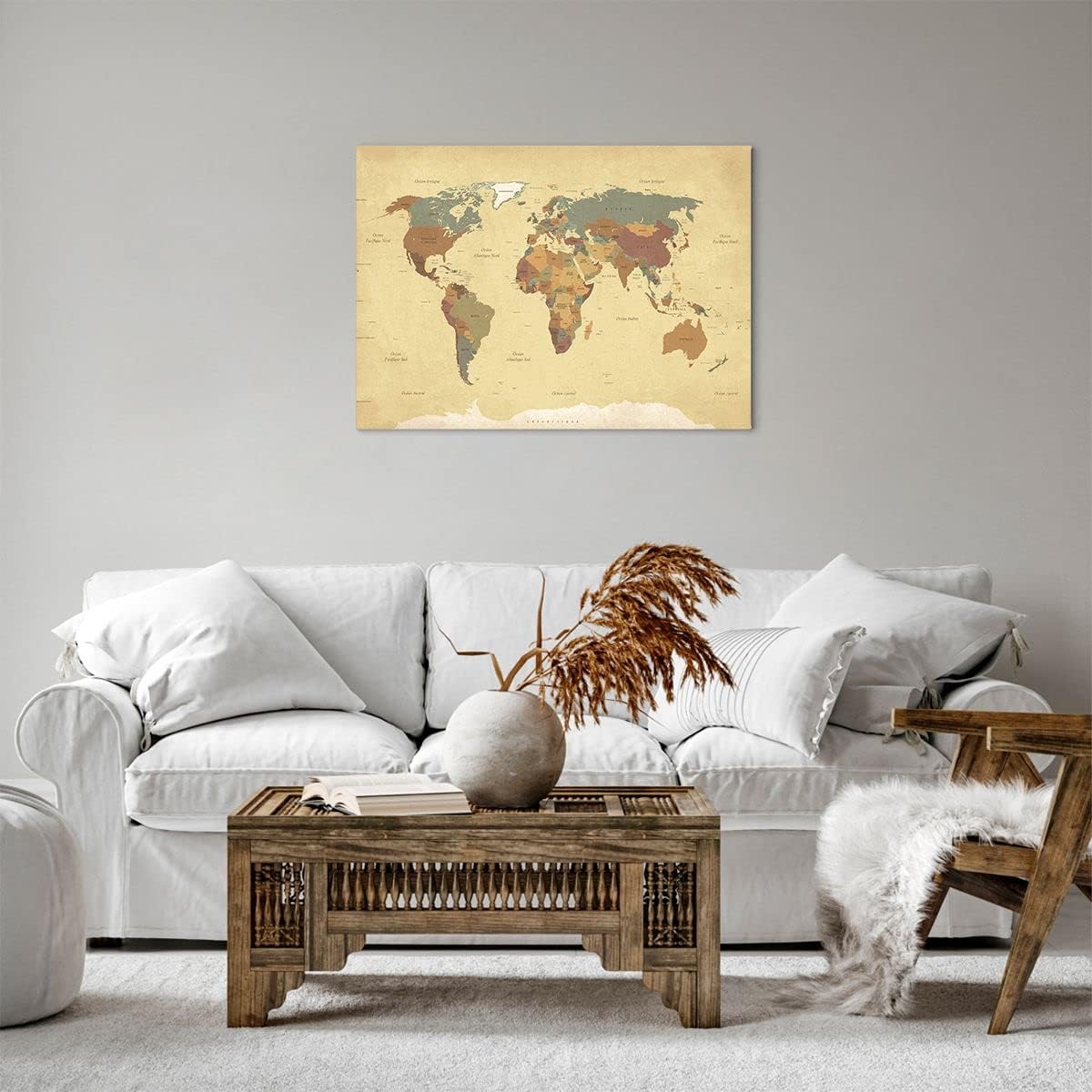 Bilder auf Leinwand Karte Welt Land Leinwandbild mit Rahmen 70x50cm Wandbilder Dekoration Wohnzimmer