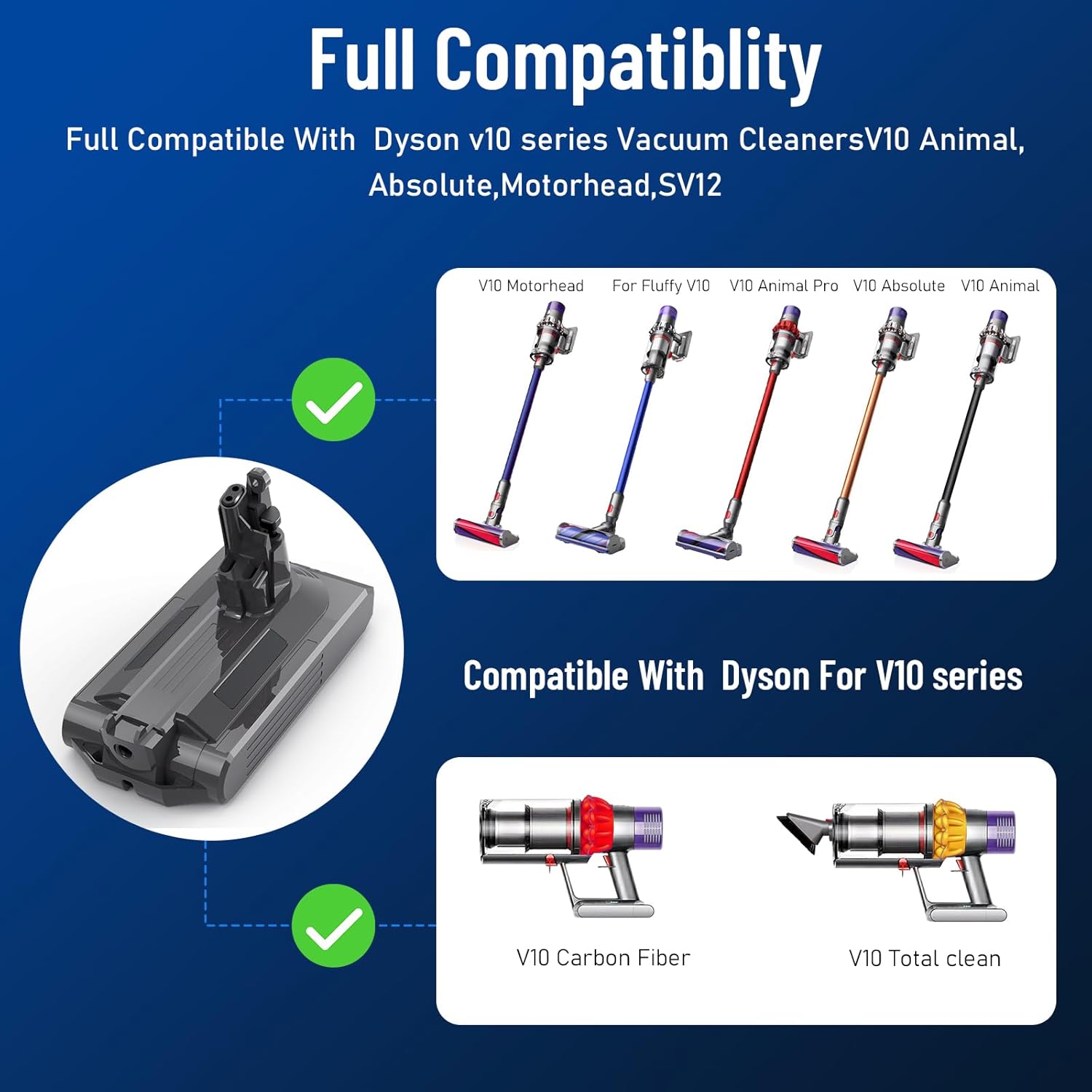 - Kompatibel mit Dyson V10 Animal, V10 Animal Pro, V10 Absolute, V10 Motorhead, V10 Fluffy, V10 Total Clean Akku-Staubsauger, Ersatz für Dyson V10 SV12 206340 969352-02 Serie Staubsauger