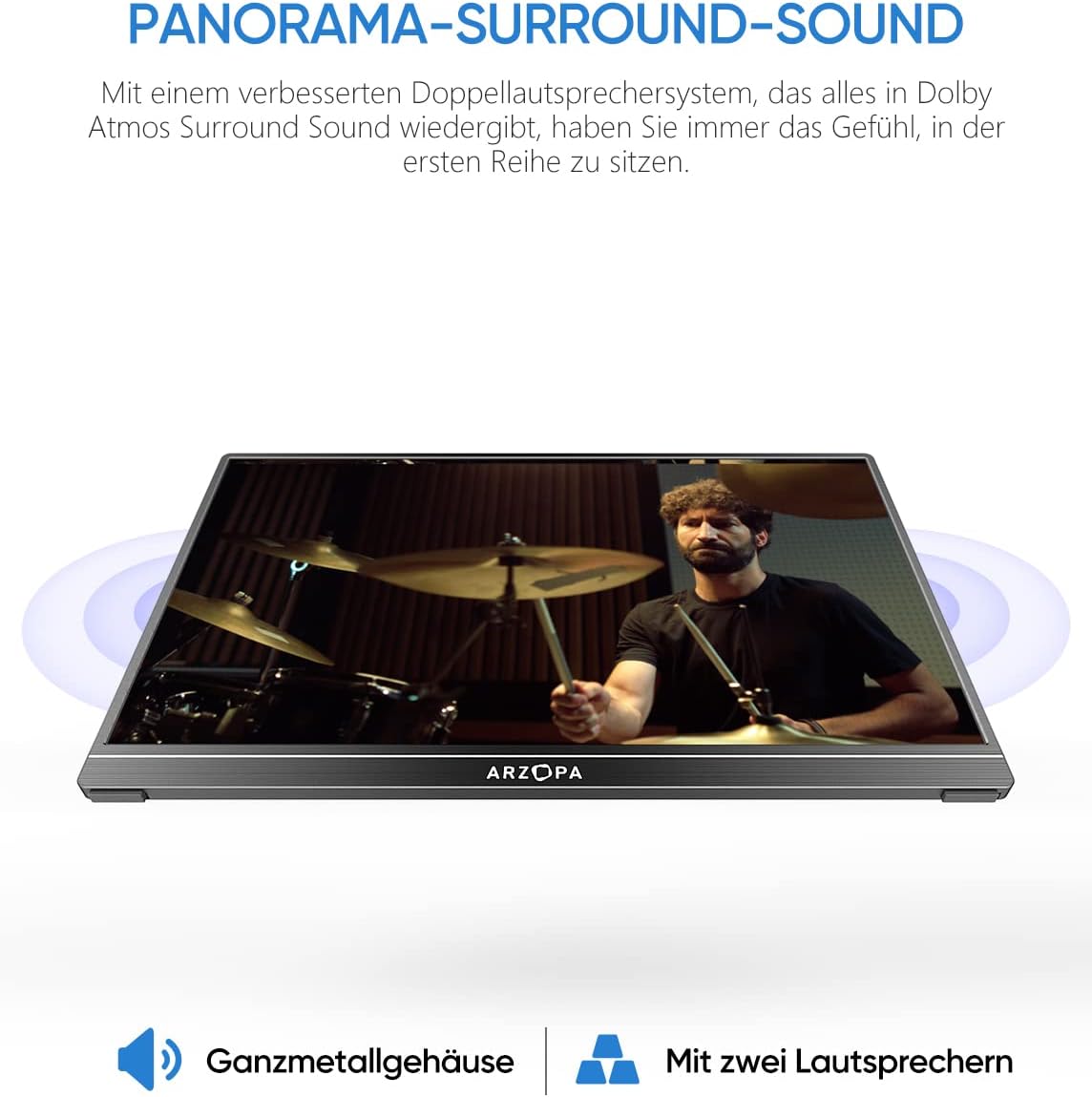 • [Zweiter Monitor] Der tragbare ARZOPA Monitor kann sehr gut als Ihr zweiter Monitor fungieren und Ihre Arbeitseffizienz verbessern. Sie können mehrere Aufgaben gleichzeitig arbeiten und ausführen, während Sie diesen Monitor verwenden.
