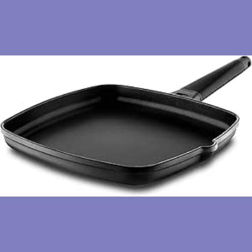 • Antihaftgrillpfanne aus Aluminiumguss mit schwarzem entfernbarem Griff - 27x27cm.
