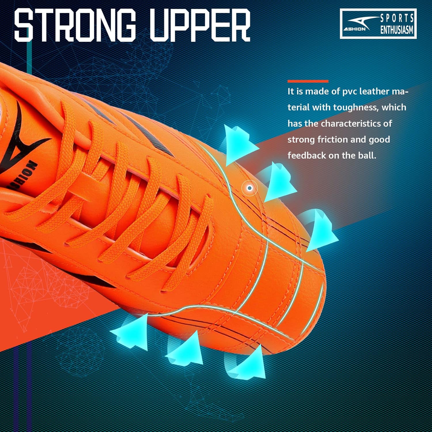 - ASHION Fussballschuhe:Das Obermaterial besteht aus hochwertigem PVC-Leder mit den Eigenschaften Weichheit, Leichtigkeit und Wasserbeständigkeit, das eine gute Kontrolle und ein gutes Gefühl für den Fussball bietet.