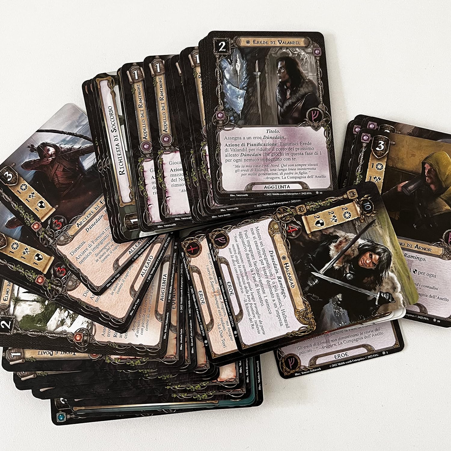 - Die Helden-Erweiterung von Angmar kann verwendet werden, um die Decks der Spieler jeder Szenario oder Kampagne des Herr der Ringe zusammenzustellen oder zu stärken: Das Kartenspiel