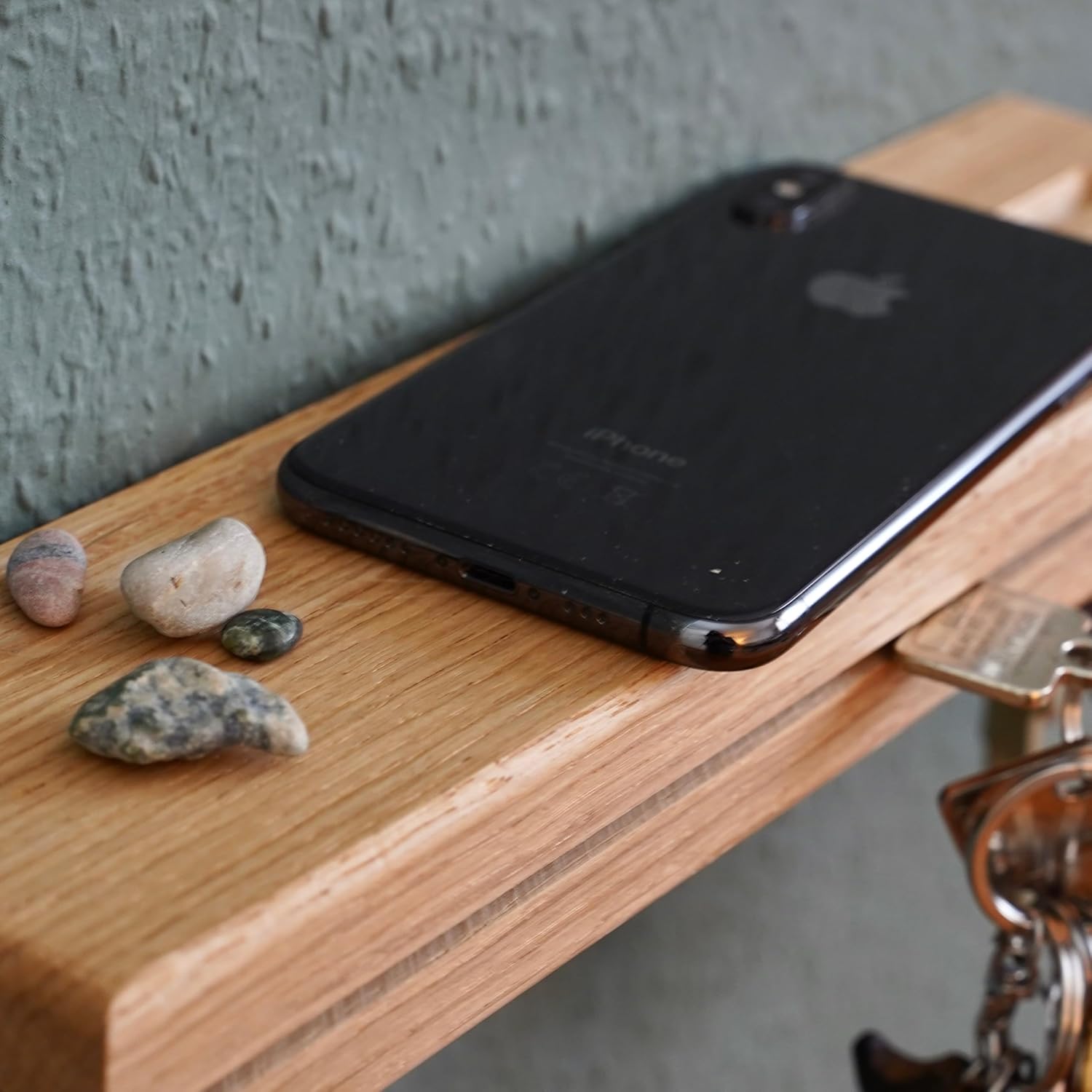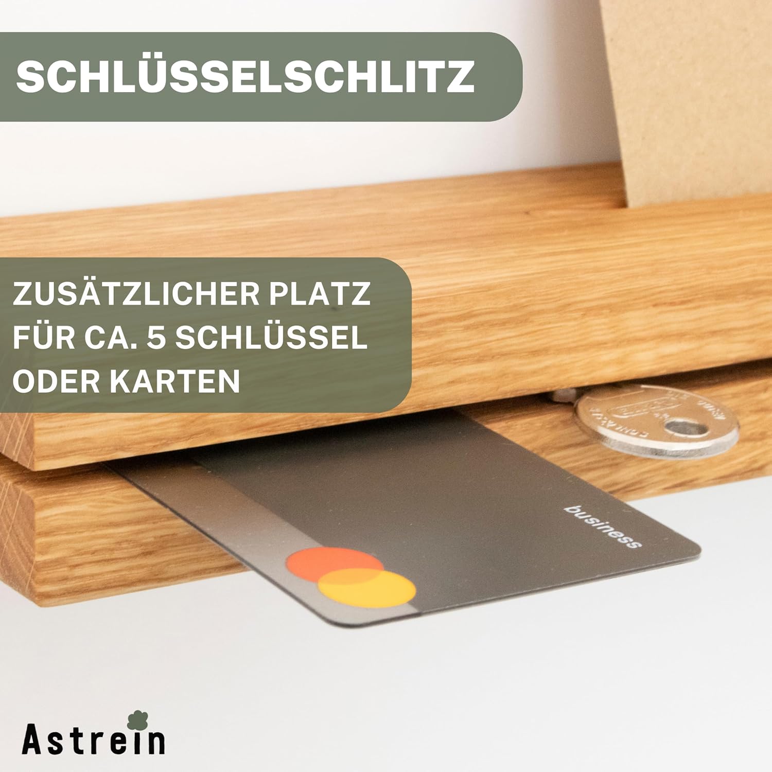 - DAS GEWISSE ETWAS! Das Schlüsselbrett aus Holz eignet sich nicht nur hervorragend um seine Schlüssel zu Organisieren. Durch die grosse Ablagefläche des Holzes (7,5 cm Tiefe) lassen sich auch bequem kleine Gegenstände wie Handys oder Portmonee darauf ablegen.