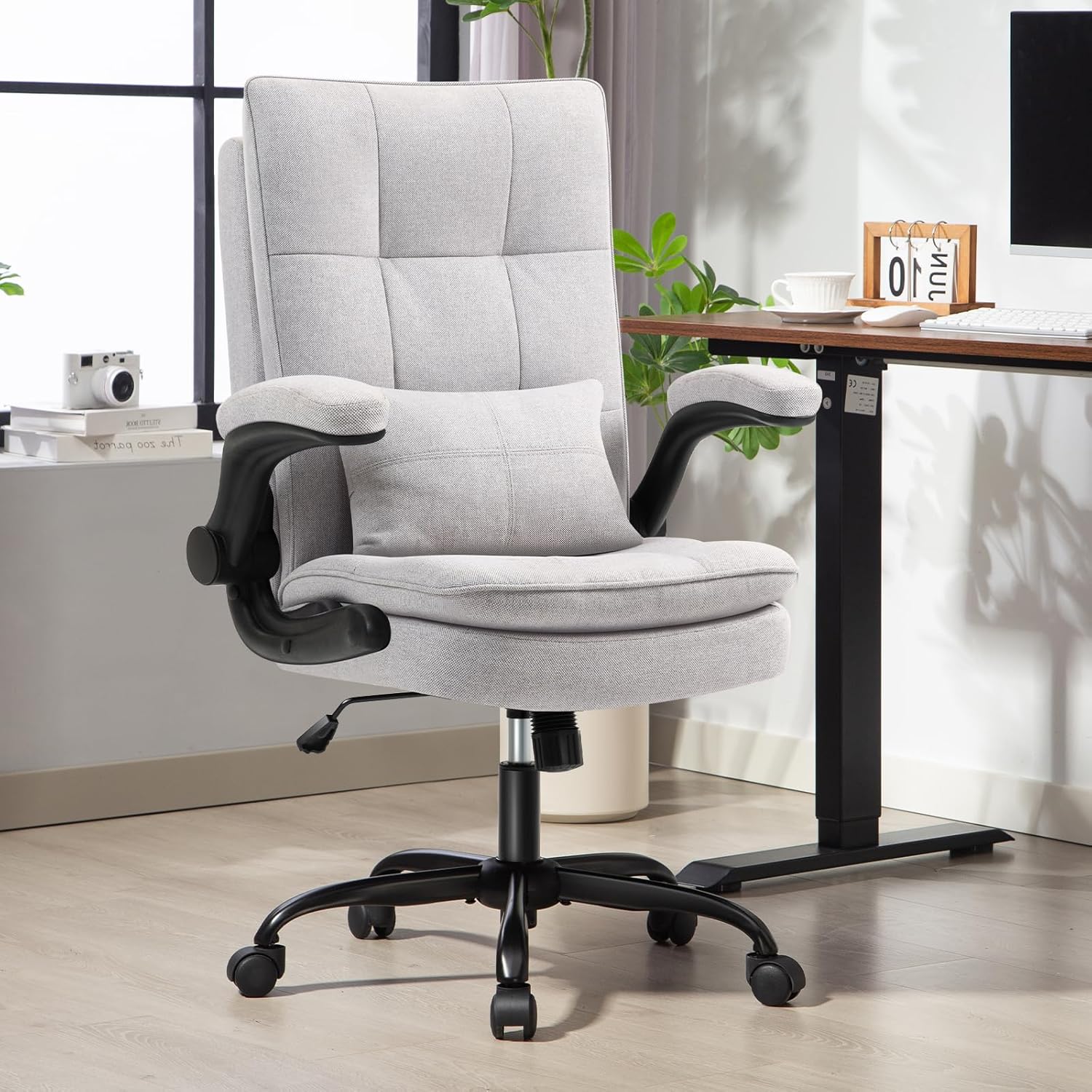 - 【Bürostuhl 150 kg belastbarkeit】Robustes Metall-Fusskreuz mit BIFMA-zertifizierter Klasse-3-Gasfeder trägt bis 150 kg. Die leisen 360° PU-Drehrollen sorgen für sanfte und flexible Bewegungen, reduzieren Geräuschbelästigungen und sind für