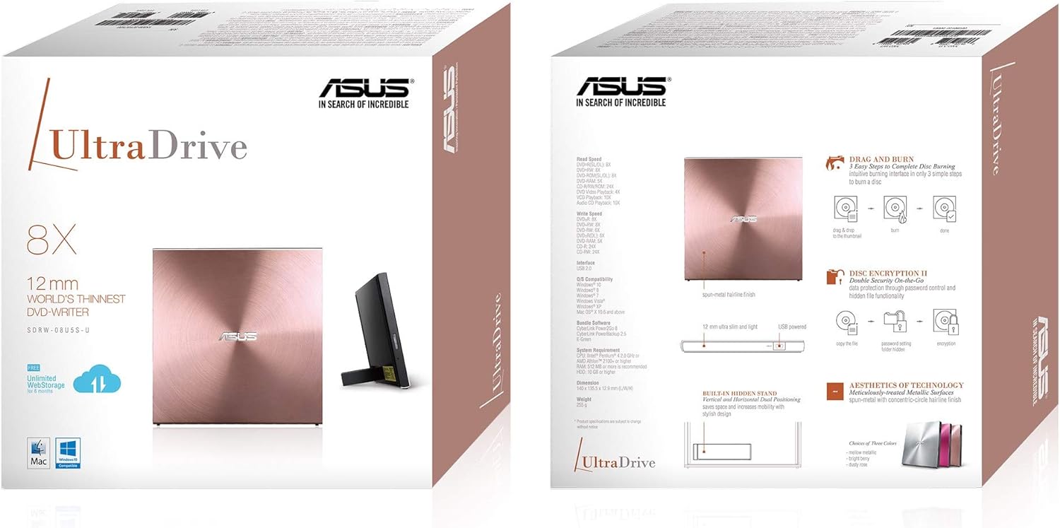 Asus SDRW-08U5S-U Ultradrive externer Slim DVD Brenner (8x DVD±R, 6x DVD±R DL, 5x DVD-RAM, USB 2.0)